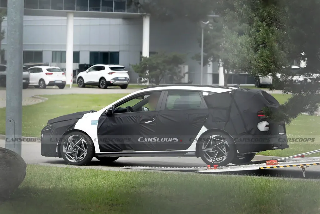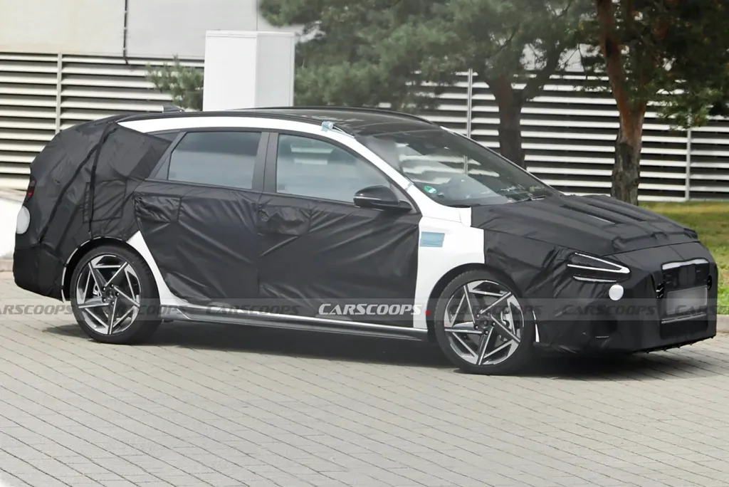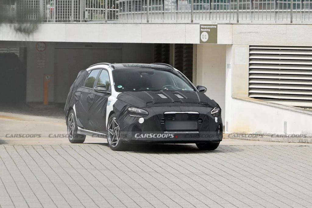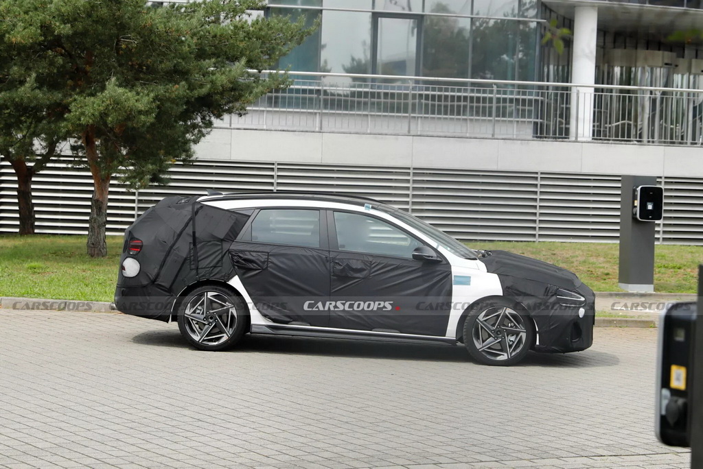 Кузов тестового образца был плотно укрыт камуфляжем, но очевидно, что это i30 Tourer с опциональным пакетом N Line. Полностью светодиодные фары и задние фонари, судя по всему, перешли от первого рестайлинга, а 18-дюймовые легкосплавные колесные диски — от второго. Бамперы почти идентичны нынешней версии, хотя под маскировкой могут скрываться незначительные доработки.