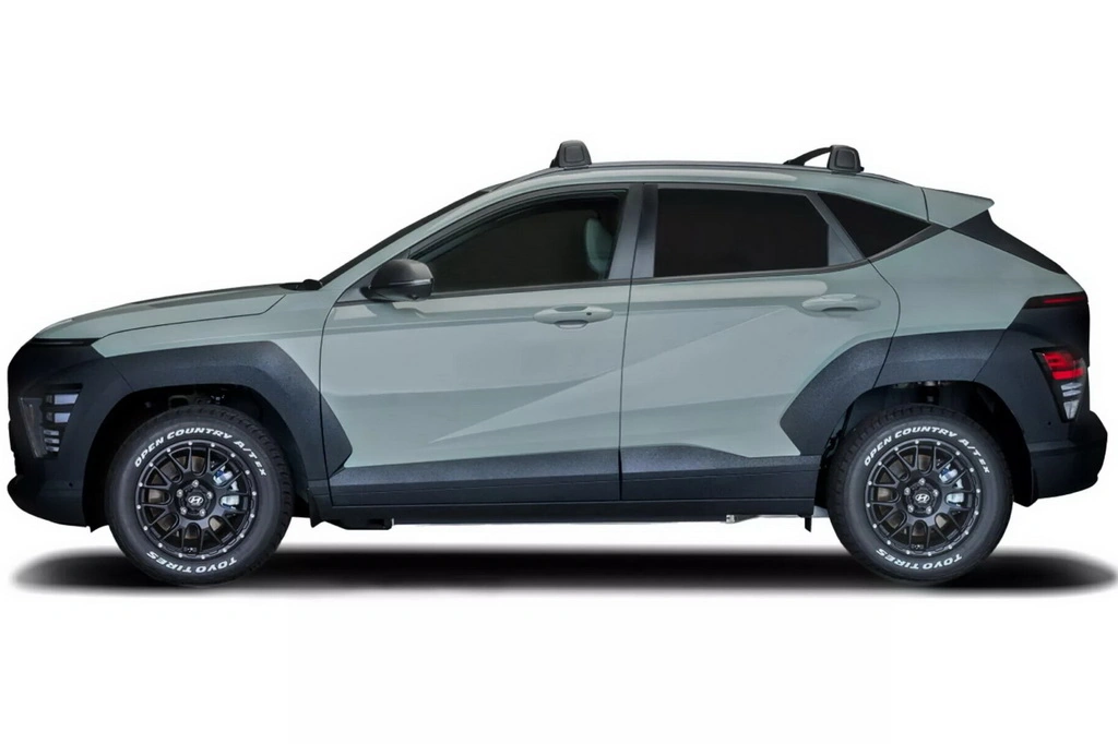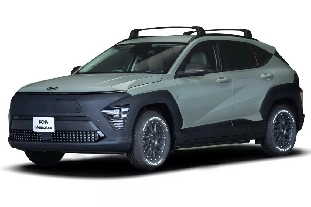 Kona Mauna Loa получила черные легкосплавные диски и внедорожные шины Toyo Open Country A/T размерностью 215/60 R17. Дизайнеры также снабдили новинку черными брызговиками, корпусами зеркал и эмблемами, а на крыше установили массивные рейлинги.