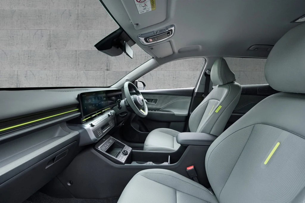 Интерьер получил светло-серую кожаную обивку с акцентами цвета лайма.