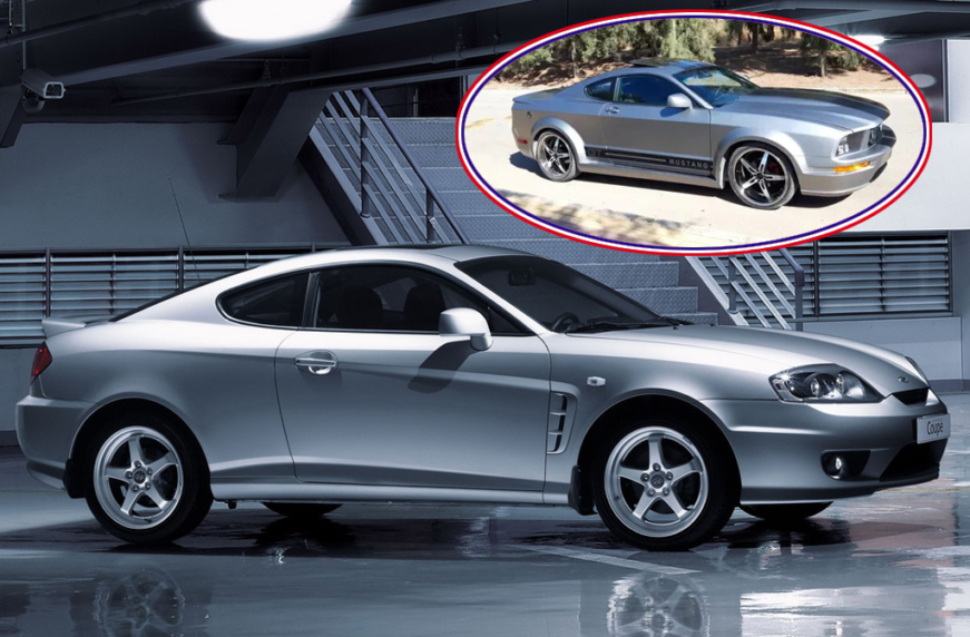 Tiburon был модифицирован в стилистике Ford Mustang пятого поколения. Реплика на испанских номерах была создана неизвестными мастерами и периодически попадает в объективы. Сведений о трансформации Hyundai мало, но тот, кто создал этот автомобиль, явно вложил много времени и усилий, пытаясь сделать реплику похожей на прообраз.