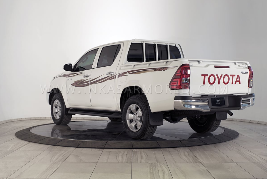 Канадская компания INKAS, которая специализируется на бронировании машин, представила защищенный пикап Toyota Hilux. Благодаря броне уровня CEN BR6 он может защитить от обстрела из стрелкового оружия калибра 7,62 мм и одновременного подрыва двух гранат.