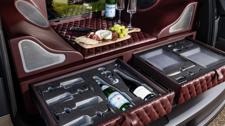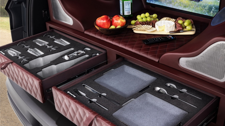 Флагманский внедорожник традиционно имеет богатую комплектацию, включающую отделки сидений из полуанилиновой кожи с функциями подогрева, вентиляции и массажа в первых двух рядах. Покупатели также найдут подогреваемое рулевое колесо, замшевую обивку потолка, отделку из ясеня и алюминиевые вставки.