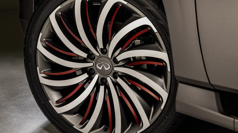 Внешне QX80 Autograph Lounge украшен матово-серой пленкой, которая прекрасно сочетается с черными и темно-бронзовыми элементами декора. Пневматическая подвеска получила новые настройки, позволяющие максимально уменьшить дорожный просвет. Стильные 24-дюймовые колеса получили комбинированную окраску, а также плавающие центральные колпаки.