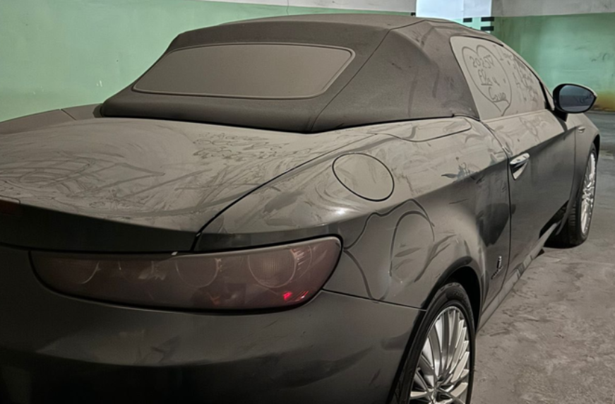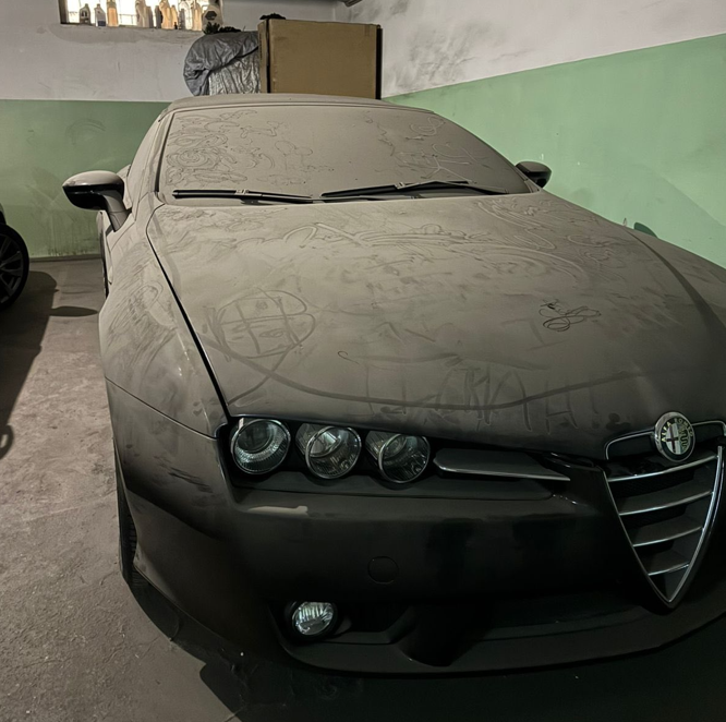 Спортивный автомобиль Alfa Romeo Spider 2.2 JTS 2007 года выпуска почти 5 лет простоял в гараже и не эксплуатировался. На его одометре зафиксирован пробег в 15 989 км. За годы простоя кузов покрылся толстым слоем пыли, на которой даже успели оставить надписи. Фотографиями находки поделился украинский блогер Roma Urraco. Он отметил, что авто было куплено новым у дилера и эксплуатировалось только по выходным в хорошую погоду.