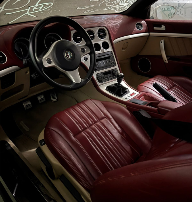 Известно, что под капотом этой Alfa Romeo установлен 2,2-литровый четырехцилиндровый двигатель мощностью 185 л.с., который работает в паре с шестиступенчатой механической коробкой передач и системой переднего привода. Агрегат находится в полностью рабочем состоянии. После мойки стало понятно, что кузов, окрашенный в черный цвет, и салон, отделанный красной кожей, также идеальны и не имеют следов износа.