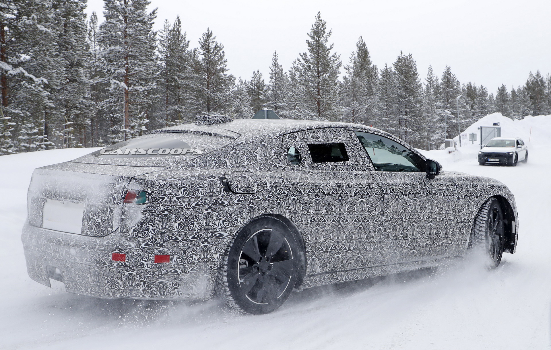 Прототип Jaguar XJ впервые попал в поле зрения фотошпионов в январе этого года. На свежих фото с зимних испытаний в какой-то из северных стран седан позирует в серийном кузове. Судя по фото опубликованных Carscoops, электрический XJ габаритами будет больше предшественника.