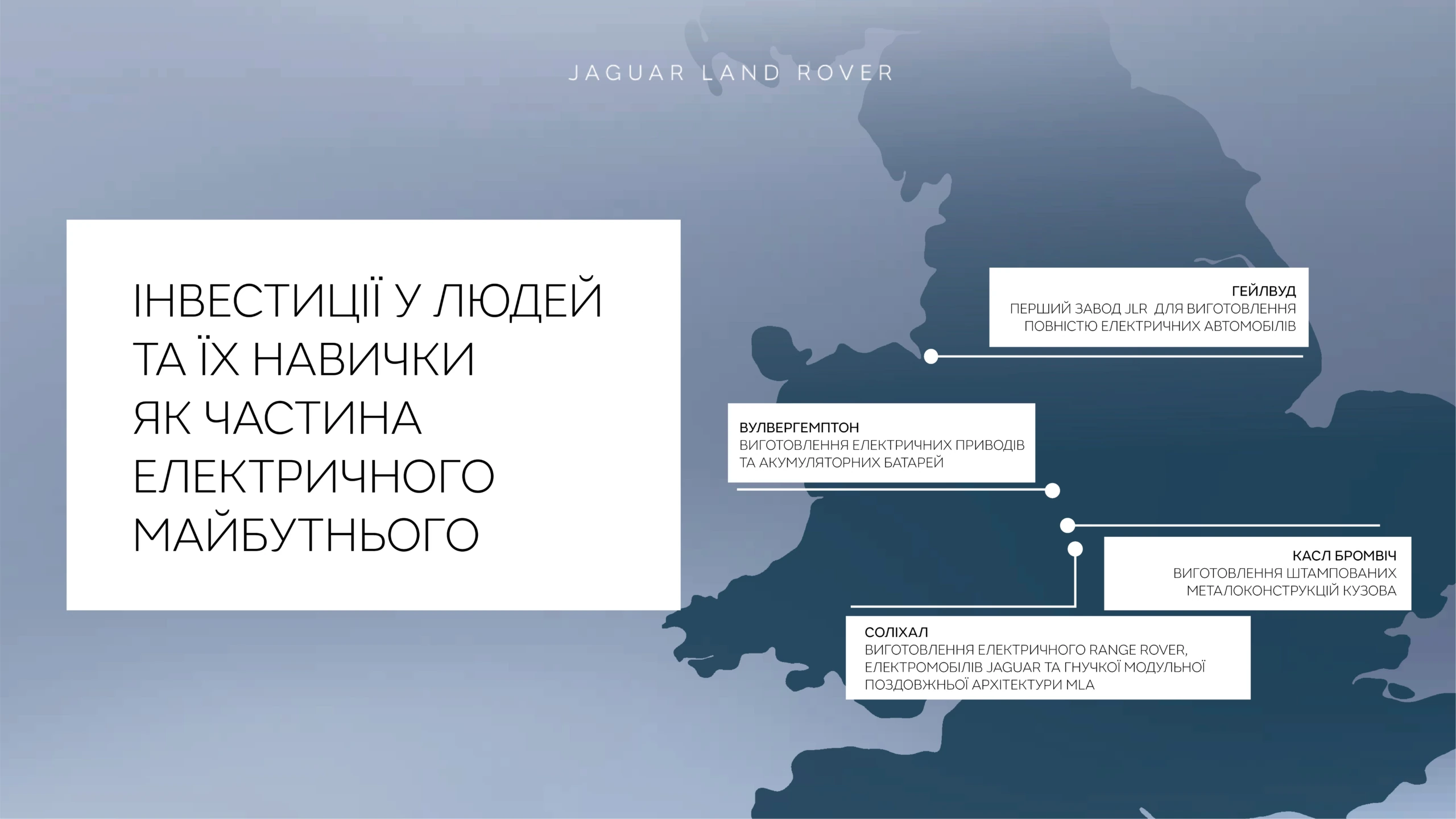 - Протягом наступних 5 років компанія Jaguar Land Rover інвестує 15 млрд фунтів стерлінгів у виробничі операції, інноваційні технології, штучний інтелект та навчання співробітників