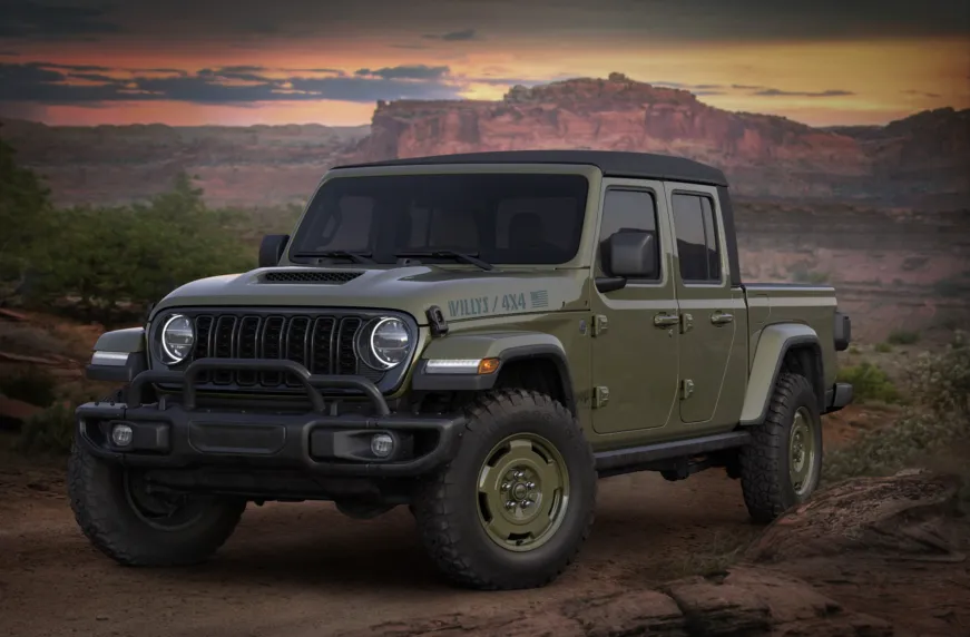 Американская компания Jeep показал новые версии своей популярной модели Gladiator. Одна из них – Willys ’41 – посвящена армейскому пикапу Kaiser Jeep M715, представленному в 1967 году. Это «модная» модель в военном стиле со стальными бамперами и уникальными 17-дюймовыми дисками цвета Olive Drab.