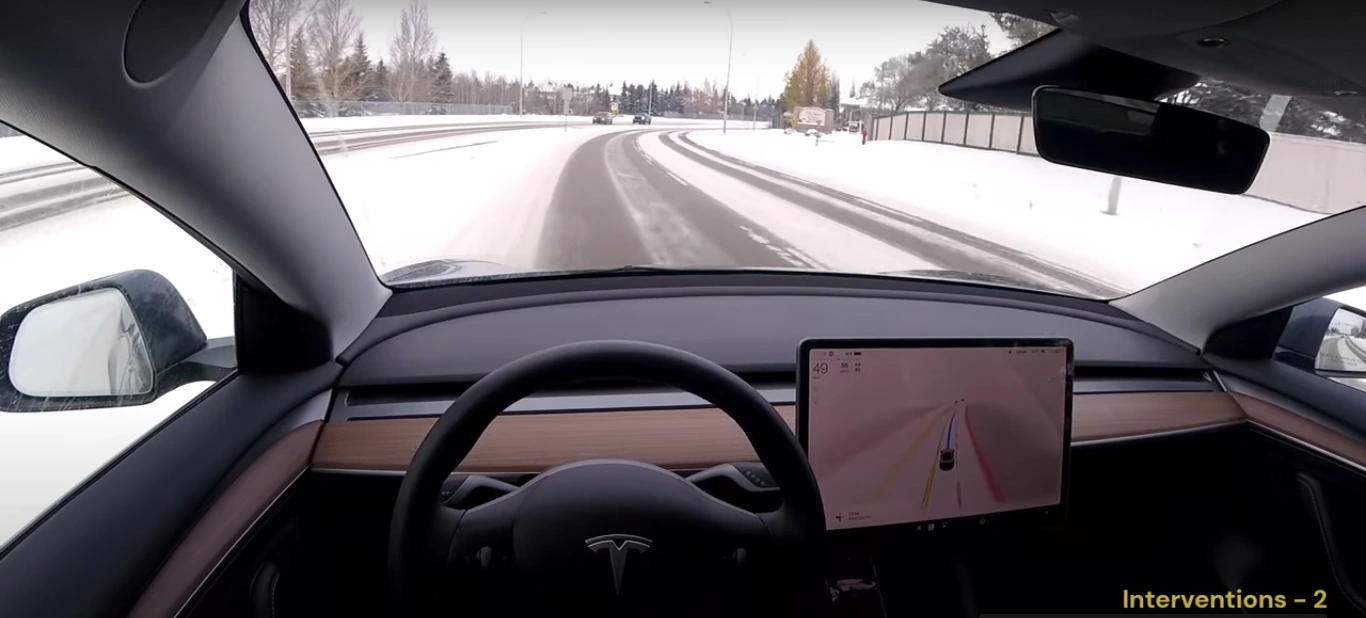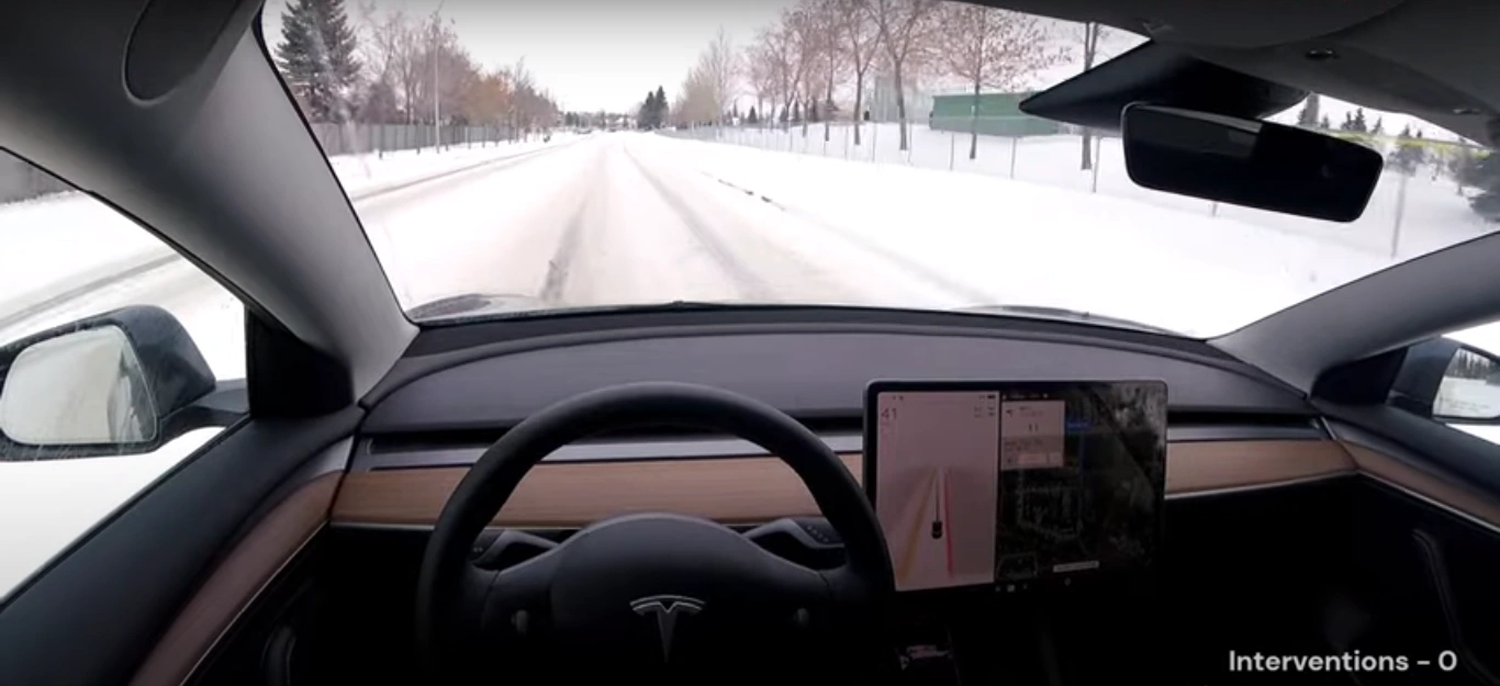 Наглядно показал, как ведет себя электромобиль американской марки на таких дорогах владелец YouTube-канала «Bruce The Model 3», который проживает в Эдмонтоне (Канада). Мужчина выехал на своей Model 3 сразу после первого снегопада. Он включил FSD и решил проверить его работоспособность в таких условиях. Увы, система не оправдала себя.
