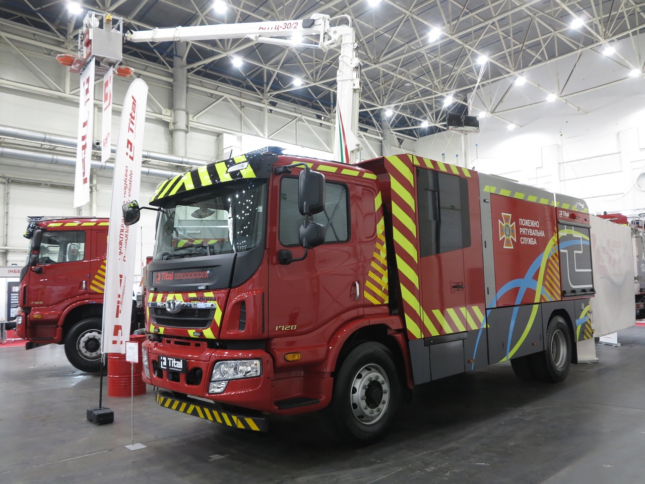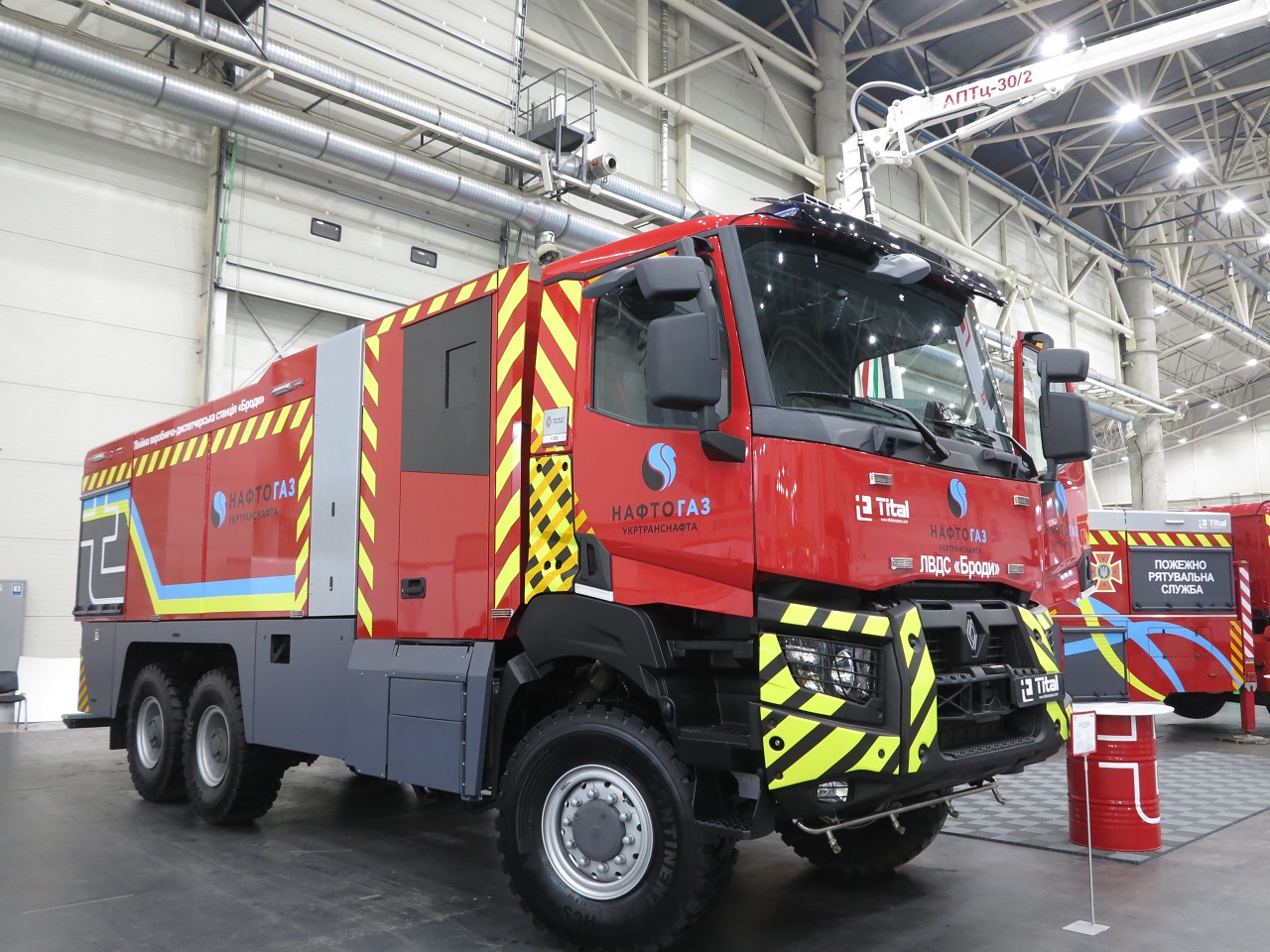В павильоне нужно отметить еще одного крупнейшего производителя пожарных автомобилей – компанию Tital. Здесь представлено три интересных автомобиля. Из новинок отметим пожарную автоцистерну АЦ-12-90 на шасси Renault K (6х6).