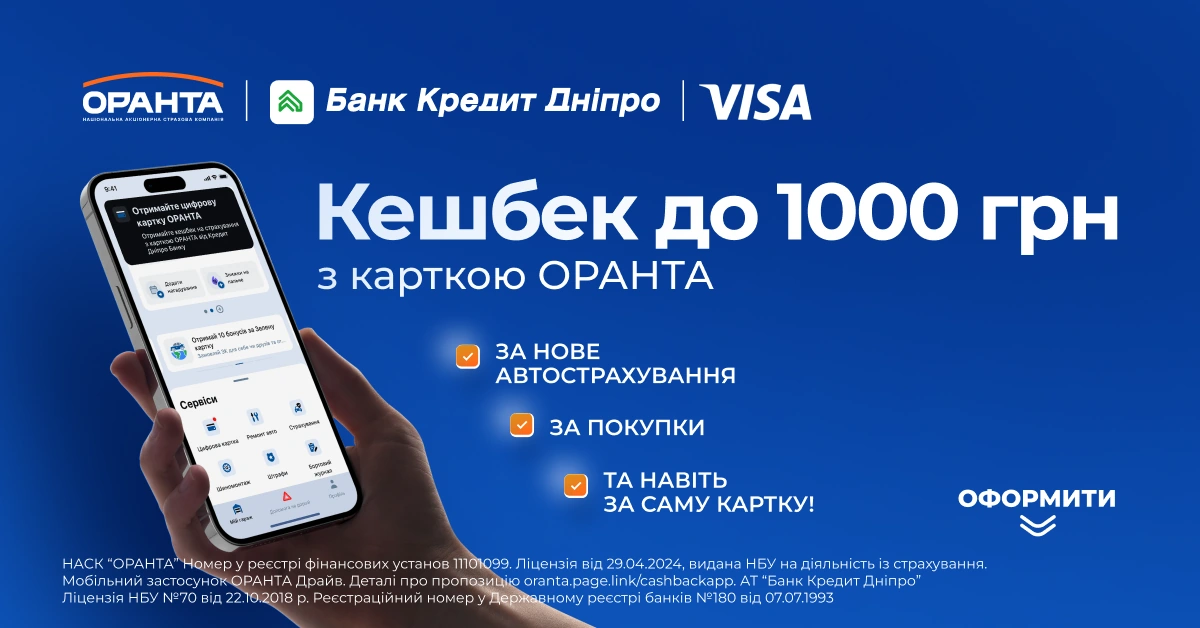 До 1000 гривень кешбеку – не за реєстрацію, не за участь у розіграші, а просто за користування карткою. Страхова компанія ОРАНТА спільно з Банком Кредит Дніпро запустили оновлену програму винагороди, яка дозволяє автовласникам отримати грошове повернення не лише за страхування, а й за звичайні повсякденні покупки з карткою ОРАНТА.