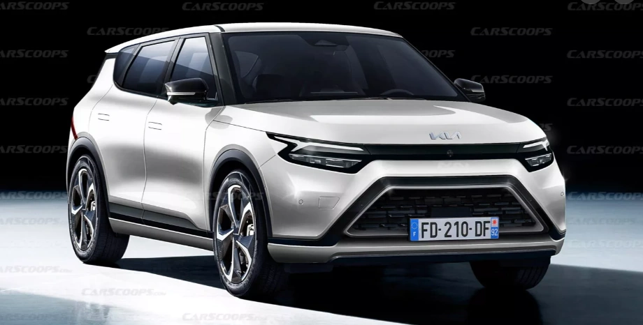 Специалисты издания Carscoops, опираясь на информацию, полученную из неофициальных источников, и используя язык стиля Kia создали первый рендер новинки. Судя по нему, электрокар позаимствует черты у более крупного EV6. У него аналогичная оконная линия, задние крылья и фонари. Передняя панель модели напоминает Carens.