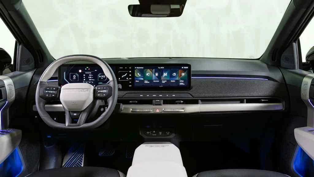 В длину кроссовер достигает 4300 мм при колесной базе 2680 мм. Ширина и высота составляют 1850 и 1560 мм соответственно. Салон Kia EV3 довольно просторный. В его оснащение вошла 12,3-дюймовая цифровая панель и мультимедийная система с аналогичным экраном. Также есть отдельный 5-дюймовый сенсорный экран для климат-контроля. Объем багажника – 460 литров.