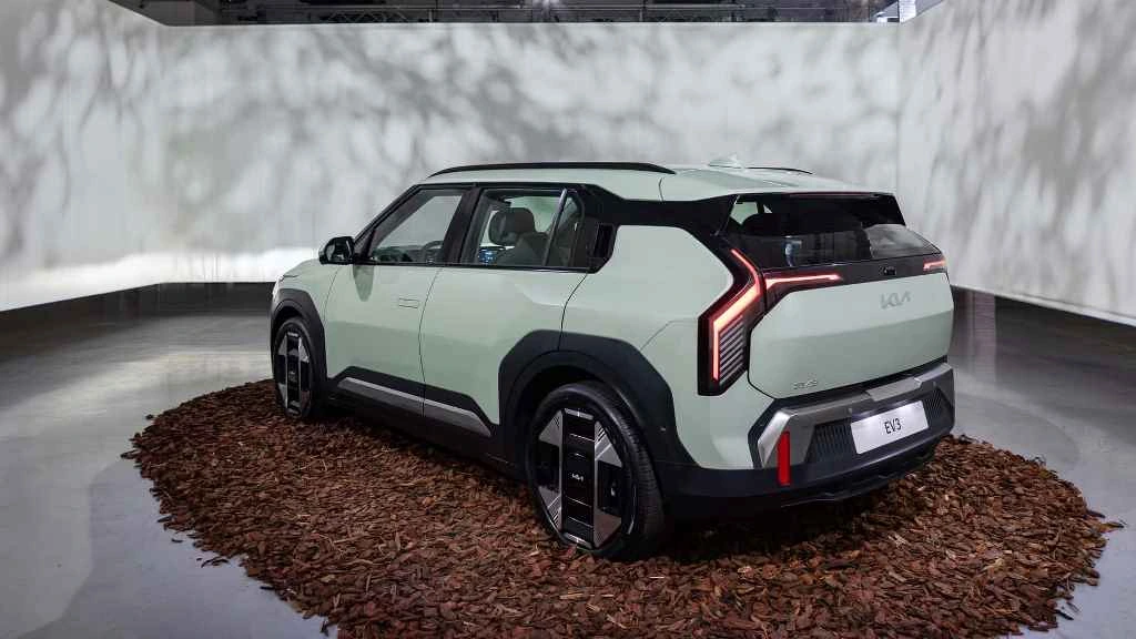 EV3 практически полностью повторяет прошлогодний концепт. Он выполнен в то же стилистике, что и EV9. У электрокара фактурный кузов с широкой линией остекления, наклонной крышей, оригинальной оптикой и относительно высоким дорожным просветом. Доступен кроссовер в девяти цветах, включая новые оттенки Aventurine Green и Terracotta. Также кроме стандартной версии EV3 предложат в варианте GT-Line с более спортивными бамперами и легкосплавными дисками.