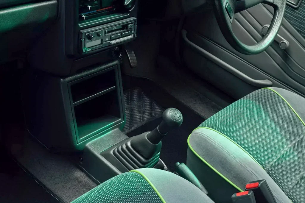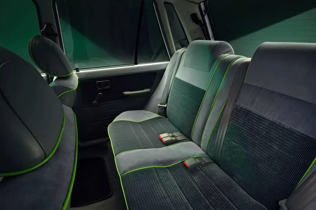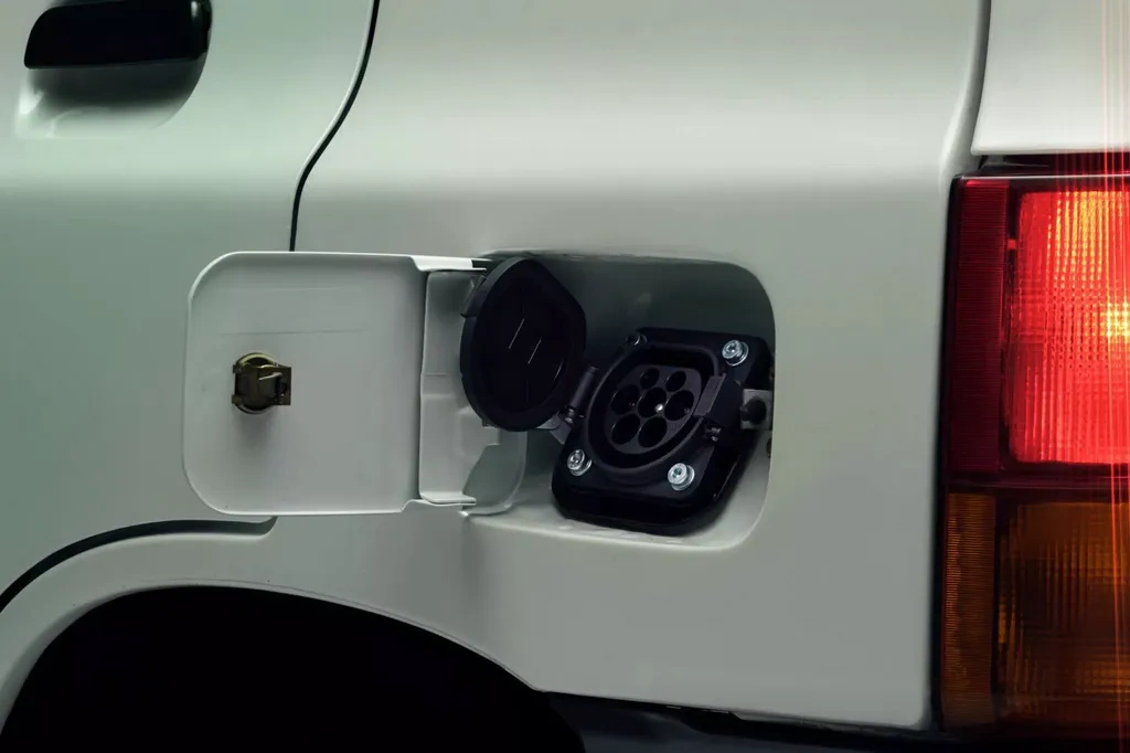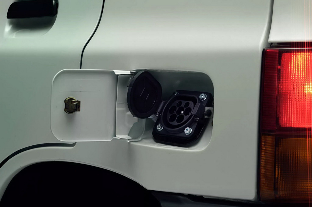 Разъем для зарядки спрятан под стандартным лючком бензобака. Первоначальный синий “металлик” заменили на оттенок White Pearl, используемый на современных электромобилях Kia. Передние и задние фары также были модернизированы, а салон перешит тканью в стиле ретро, но с яркой декоративной строчкой цвета лайма. Оригинальный набор приборов сохранили, заменив лишь указатель уровня топлива на индикатор оставшегося заряда.