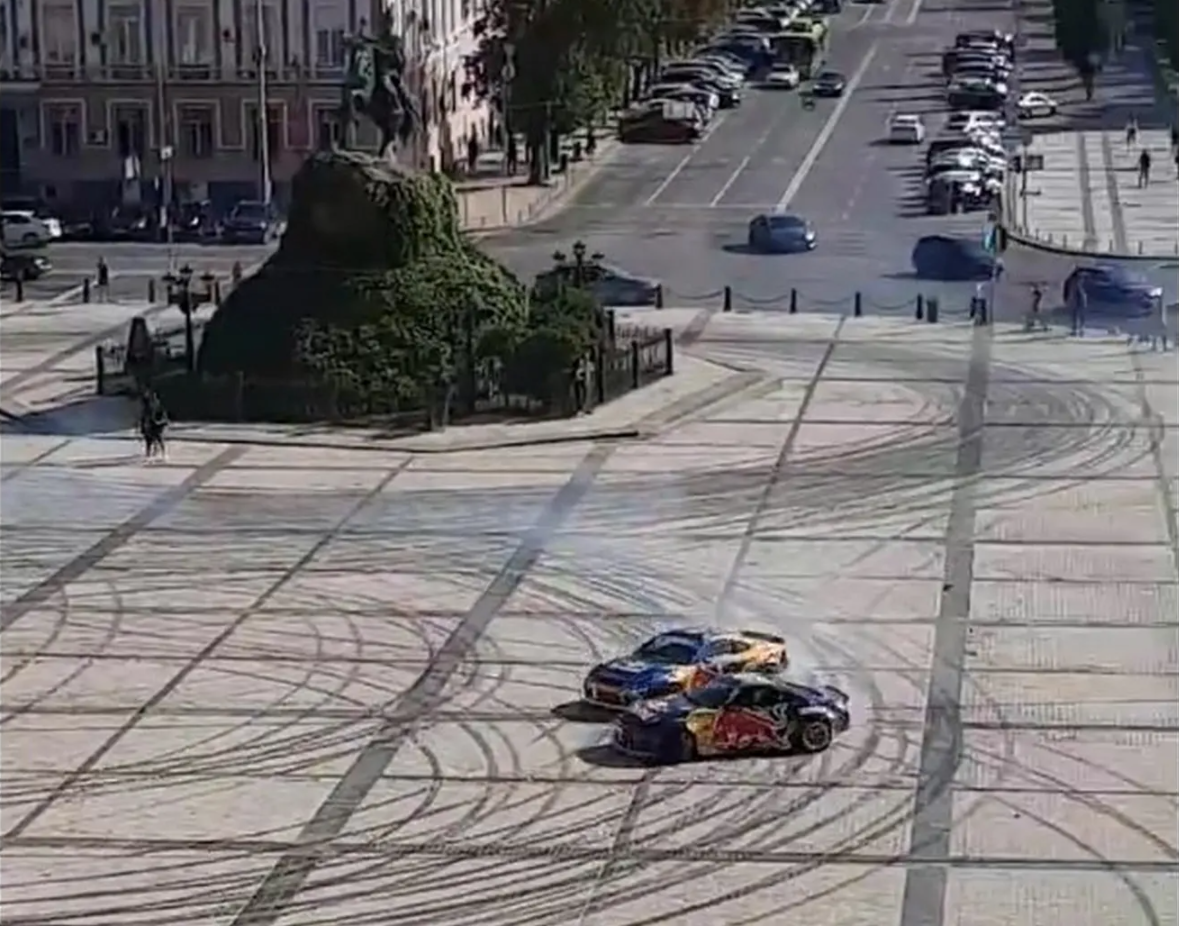 На минувшей неделе на Софиевской площади в Киеве произошел вопиющий инцидент. Компания Red Bull в рамках съемки рекламного ролика выпустила на площадь два гоночных автомобиля, которые в дрифте «нарезали» на ней несколько десятков восьмерок.