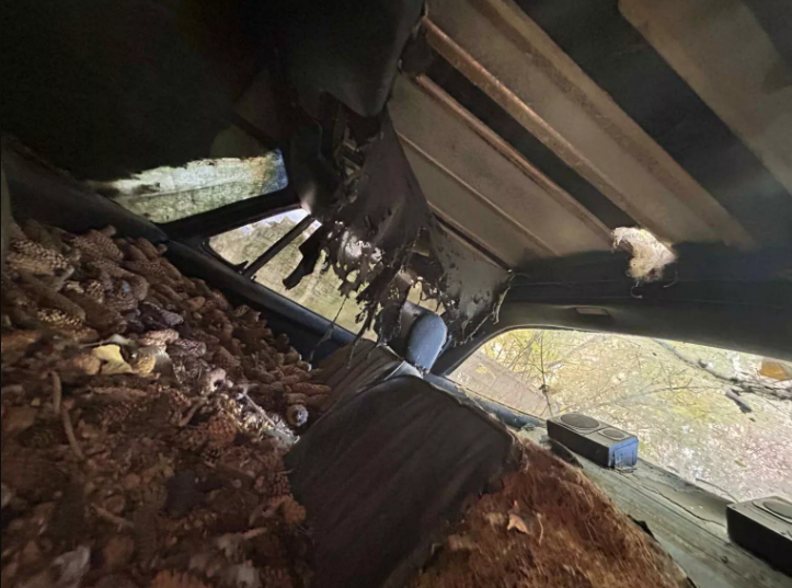 За годы простоя спорткар не просто покрылся слоем пыли и грязи, а буквально увяз в опавших шишках и сосновых иголках. Они даже заполонили его салон. Проникнуть им туда помогли белки, которые решили, что это их личное хранилище. Один из энтузиастов решил выкупить этот Porsche 911 Targa несмотря на его удручающее состояние.