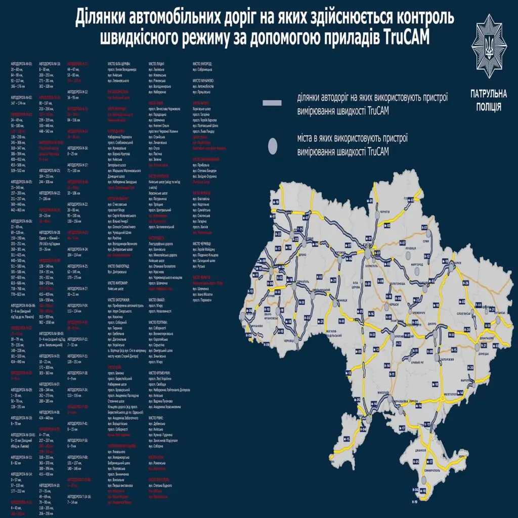 В Украине, наряду с системой автоматической фиксации нарушений ПДД, инспекторы полиции используют приборы TruCAM. С 29 февраля увеличилось количество участков дорог, которые взяли под их контроль.