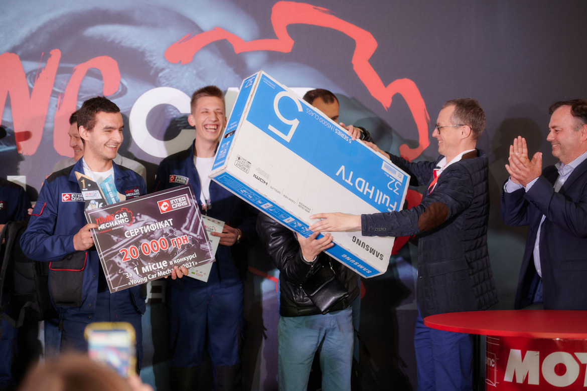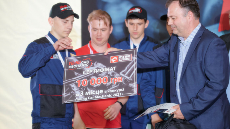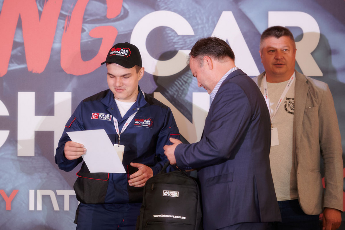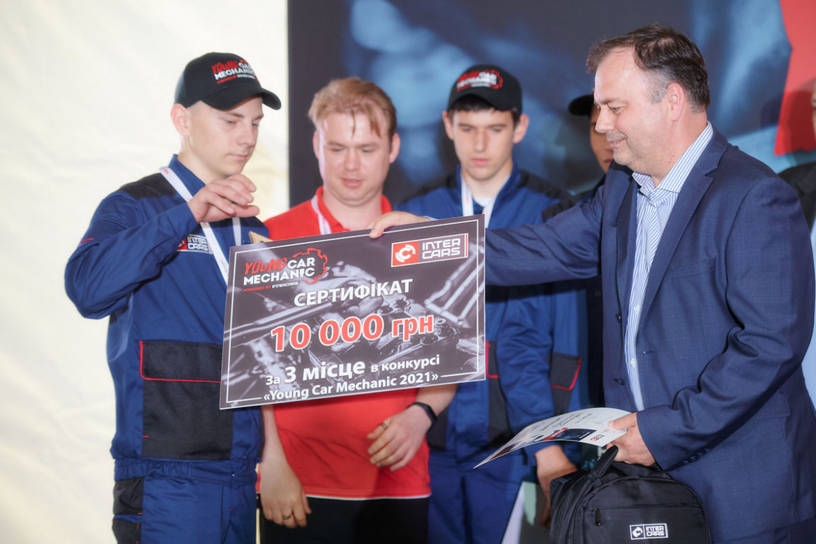 Кроме того, первых трех победителей наградили денежными премиями: 20 000, 15 000 и 10 000 грн. А вот Автомобильно-дорожный профессиональный колледж Национального университета «Львовская политехника» получил от Inter Cars Ukraine сертификат на 50 000 грн на покупку инструмента и оборудования для пополнения своей материально-технической базы, поскольку именно их студент завоевал первенство на соревнованиях.