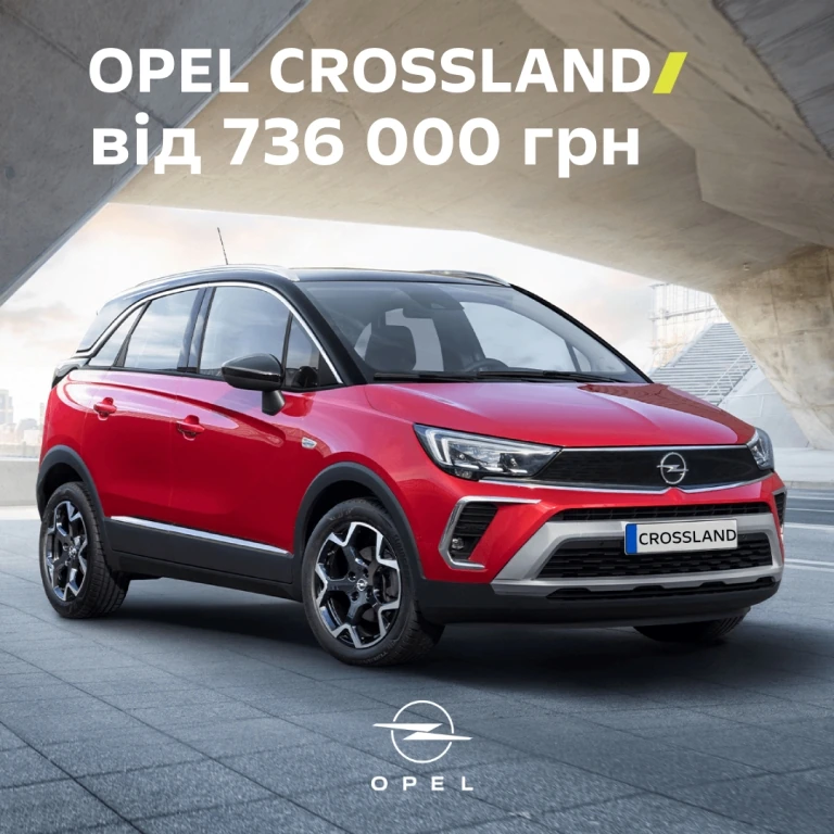 Славетний німецький бренд Opel робить нову цікаву пропозицію українським автомобілістам. Лише зараз компактний кросовер Opel Crossland доступний за максимально привабливою ціною – від 736 000 гривень.
