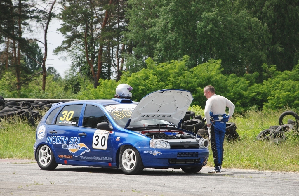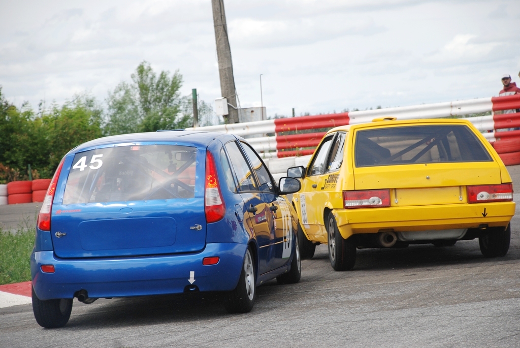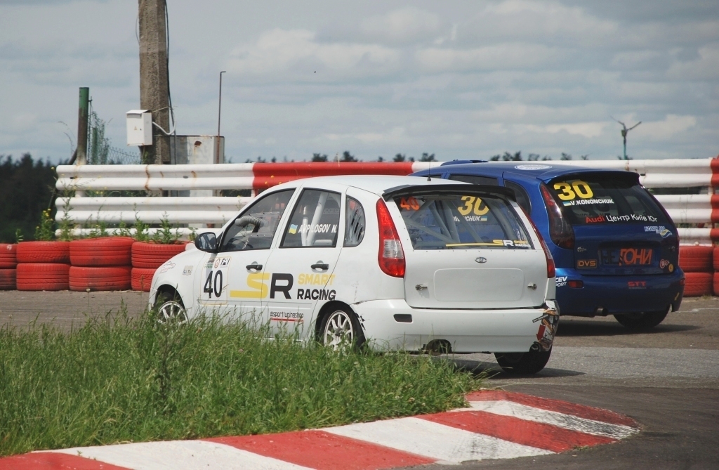 В тоже время на «Калине» Конончука начинаются проблемы с подвеской и на протяжении доброго десятка кругов 4-кратному и действующему Чемпиону Украины приходится обороняться теперь от настойчивых атак Никиты Анпилогова.