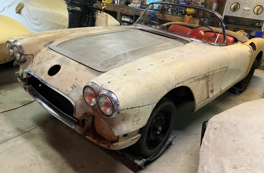 Спорткар Corvette 1960 года выпуска использовали около десяти лет, а потом разобрали и заперли в гараже. На данный момент у него отсутствует лакокрасочное покрытие на кузове, передний бампер, часть отделки и трансмиссия. Еще разорвана мягкая складная крыша, нет дверных карт, напольного покрытия и некоторых элементов декора.