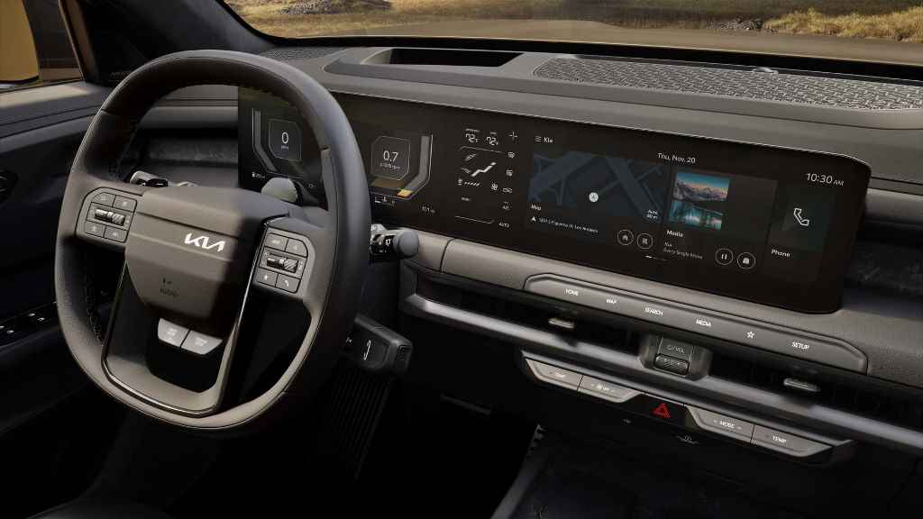 За счет прироста Telluride в длину до 5060 мм при колесной базе 2970 мм его салон стал более просторным и комфортным. В его оснащение входит большой экран, который объединяет в себе 12,3-дюймовую цифровую приборную панель и аналогичный дисплей мультимедии, новое четырехспицевое рулевое колесо и рулевую колонку, как у электромобиля. Также есть проекция на лобовое стекло и акустика Meridian с 14 динамиками.