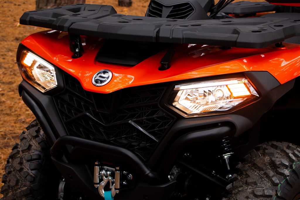 Новый квадроцикл может похвастаться расширенной комплектацией — литыми дисками, адаптивным электроусилителем руля, защитой рук, пластиковыми накладками на багажник и лебедкой. Также есть базовая модель CFMOTO CFORCE 450L BASIC