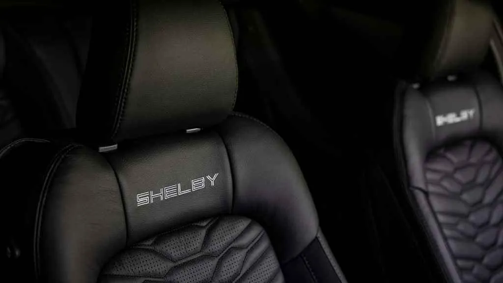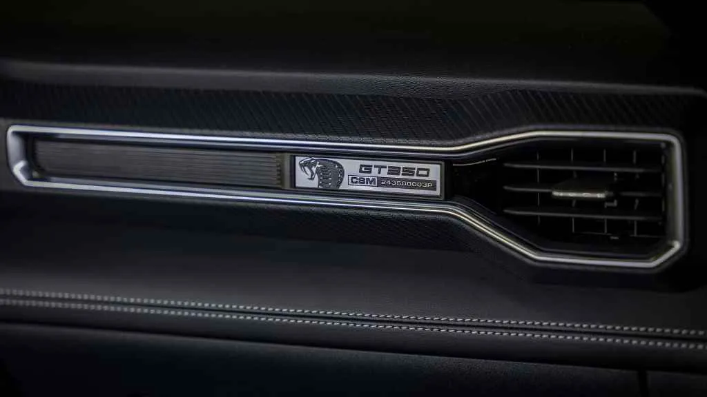 Что касается салона GT350, то здесь изменений немного. На спинках сидений, отделанных кожей, появились вышивка Shelby. Еще есть коврики с указанием производителя, специальные накладки на пороги и табличка на приборной панели с названием модели и серийным номером.