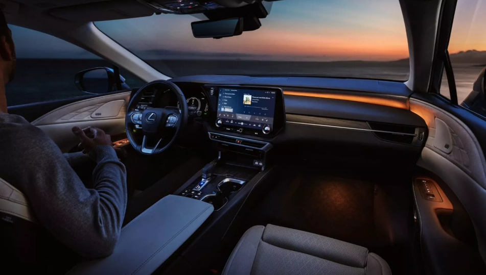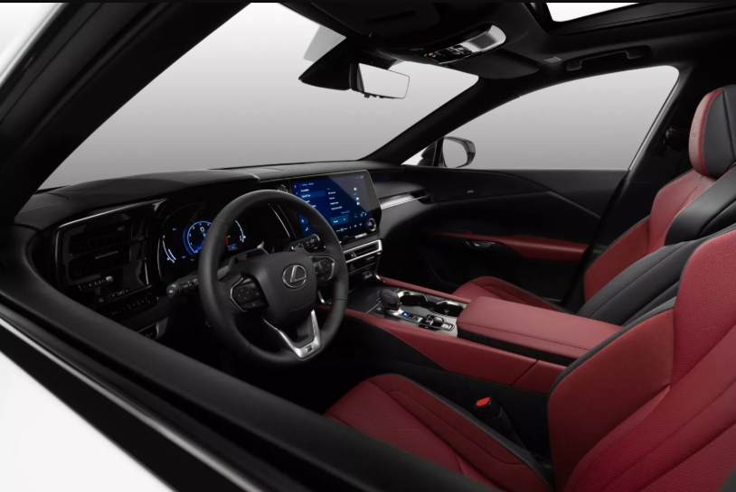 В оснащение кабины включили 12,3-дюймовую цифровую приборную панель, мультимедию с 14-дюймовым экраном и рулевое колесо с подогревом и усилителем. Есть еще система фоновой подсветки и аудиосистема с 12 динамиками. Что касается новой версии RX 450h+ Premium, то она получила панорамную крышу, сиденья с подогревом и вентиляцией, электропривод двери багажного отделения. Салон отделан тканью NuLuxe.