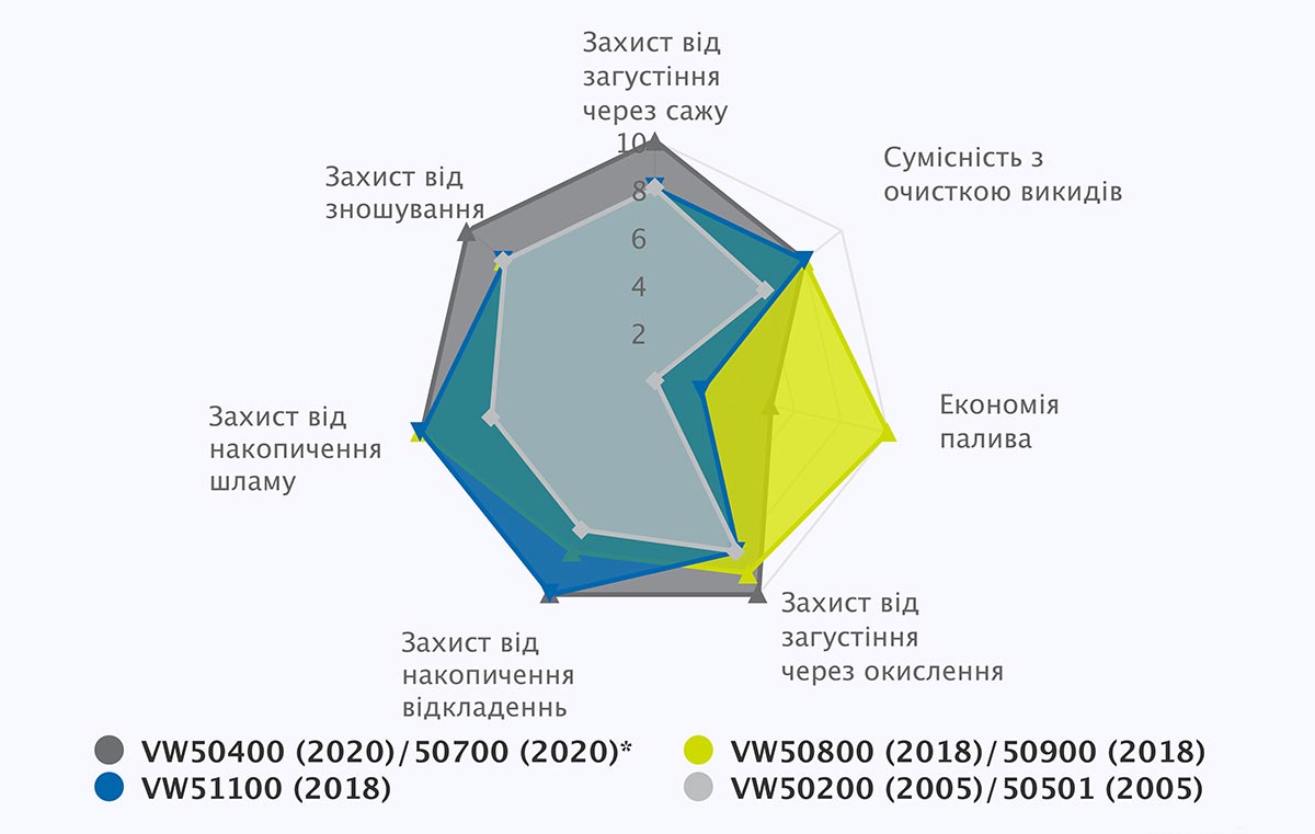 — VW 511.00 —з ще нижчою золою (≤0,8%) та з трохи вищім лужним числом (TBN), але це новий, вузькоспеціалізований стандарт.