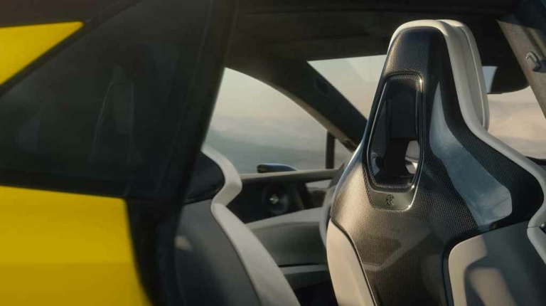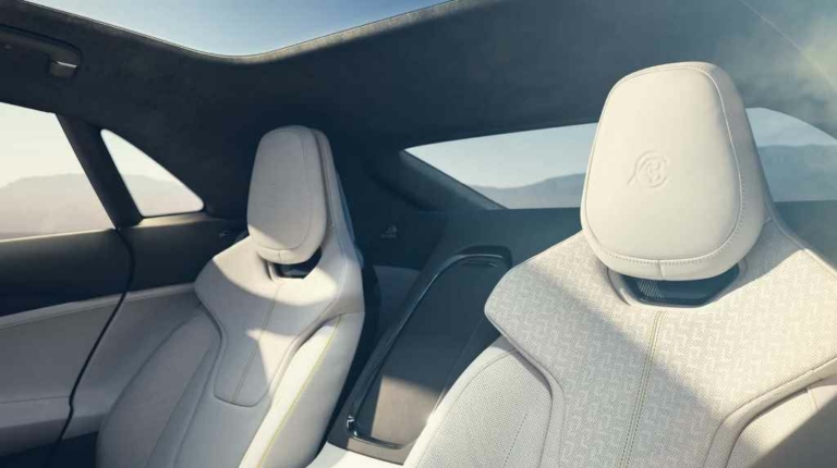 Салон новинки выполнен в минималистическом стиле. В его оснащение вошла цифровая приборная панель, мультимедийная система с экраном в форме планшета, рулевое колесо с плоским дном и четыре отдельных сиденья. Отделка кабины седана выполнена из экологически чистых материалов, кожи Nappa и алькантары. В качестве акцентов использован карбон.