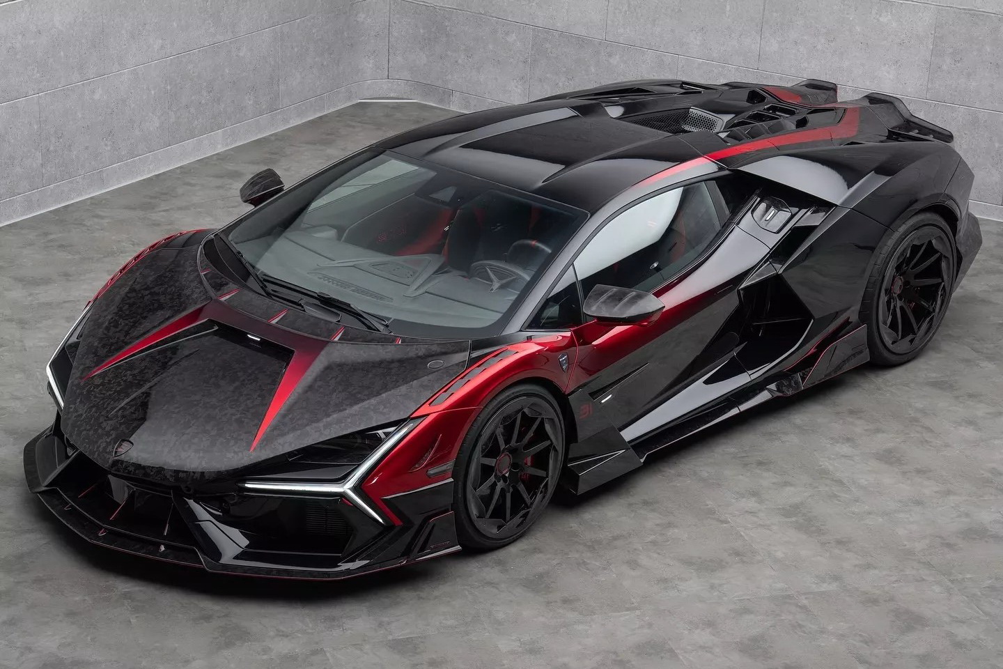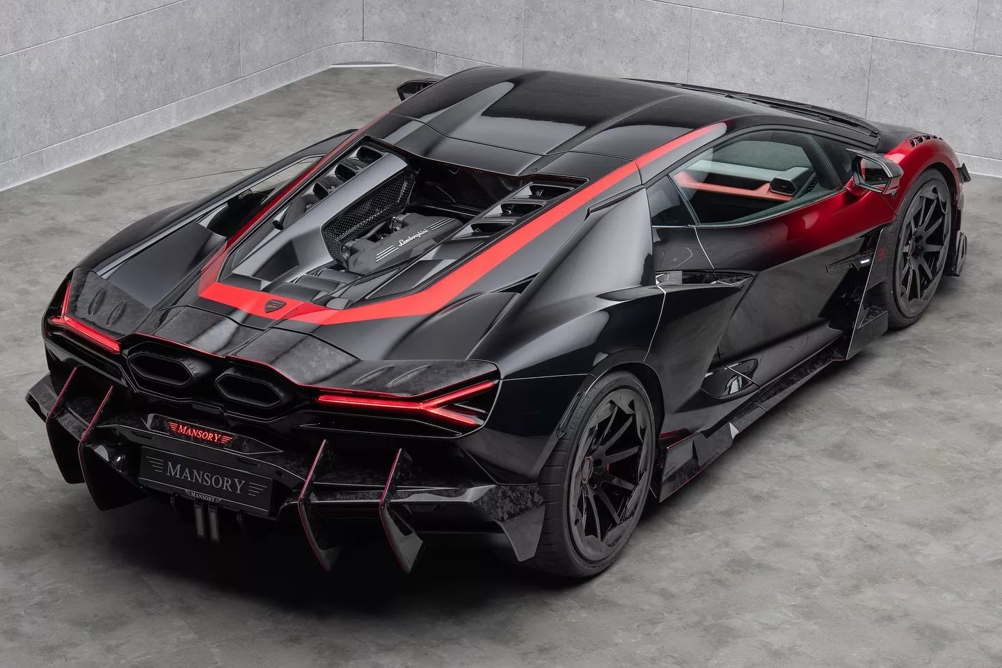 Команда Куроша Мансори серьезно поработала над Lamborghini Revuelto. Большинство оригинальных кузовных панелей были заменены на легкие кованые компоненты из углеродного волокна. Спереди установили капот с новыми большими воздухозаборниками, а также новые передний бампер и спойлер.