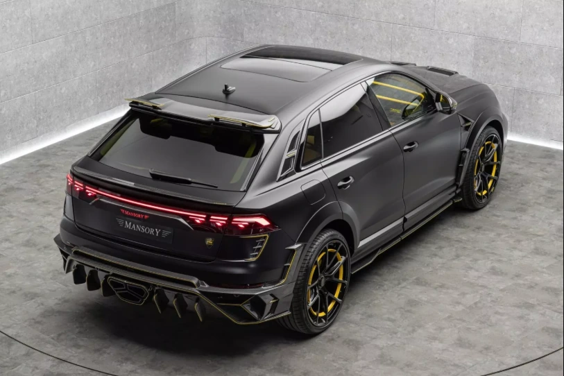 В результате доработки двигателя Audi RS Q8 и увеличения отдачи до 1000 л.с., разгон с места до «сотни» у кроссовера стал занимать менее 3 секунд. Максимальная скорость теперь ограничена на отметке в 320 км/ч. Останавливаться на этом специалисты Mansory не стали. Они также доработали его экстерьер и интерьер. В салоне использовали ярко-желтую кожу для отделки поверхностей, а в качестве акцентов – темный карбон. Подсветка потолка имитирует звездное небо.