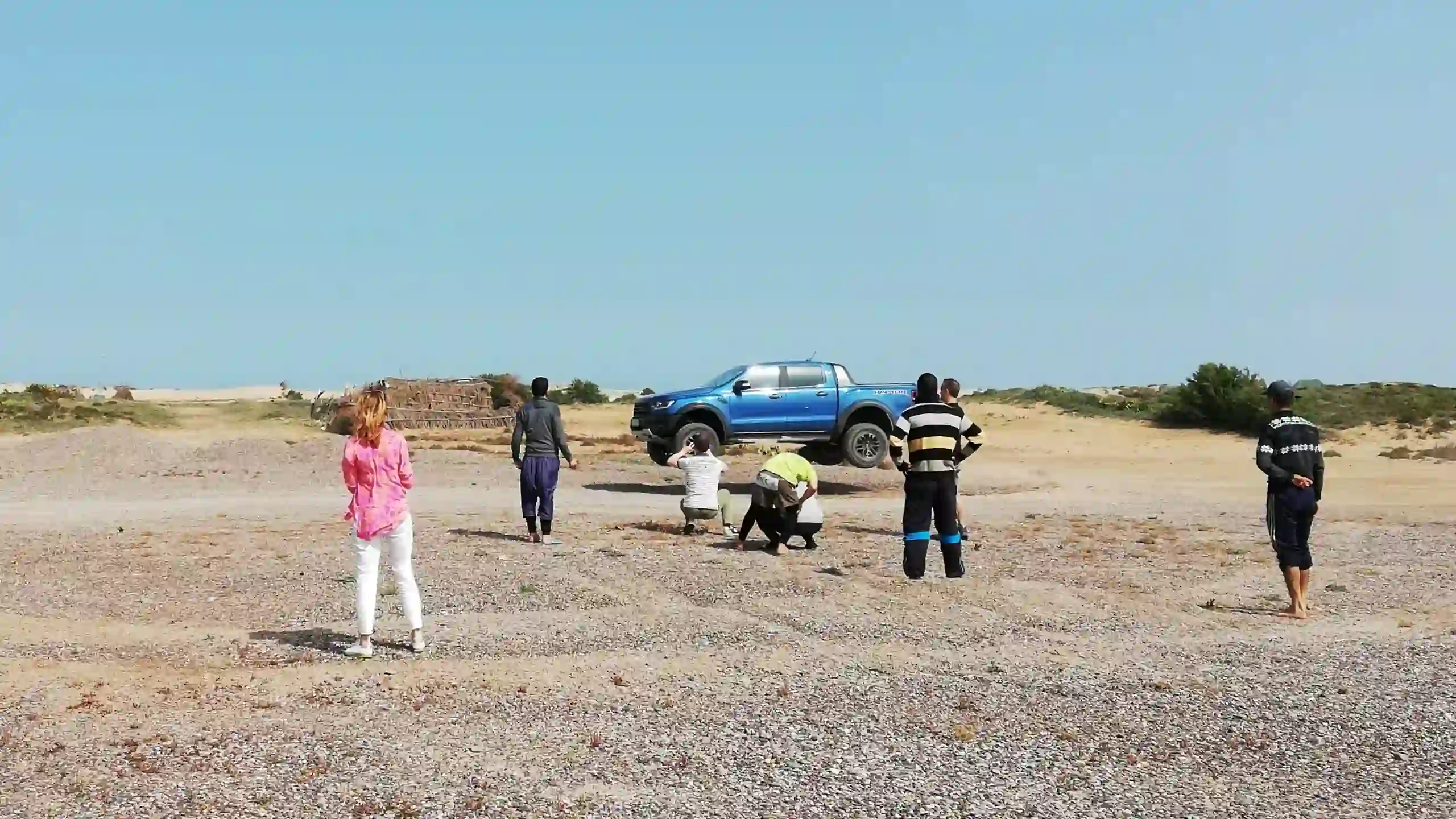 Главной фишкой первого дня стали песчаные дюны, настоящая мини-пустыня на берегу Атлантического океана! Тут правда организаторы перестарались и устроили дополнительный “перформанс”, засадив свой обычный Ranger прямо напротив бивуака для журналистов. В итоге кроме кофе и восточных сладостей мы смотрели также на многочисленные попытки команды вызволить оранжевый пикап, все больше погружавшийся в пучину песков.
