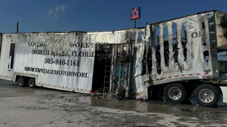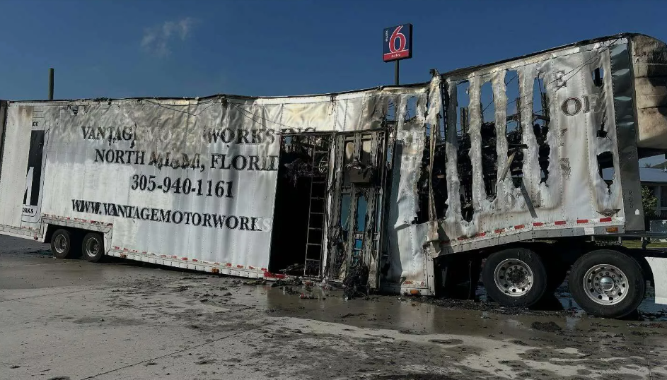 Несмотря на быструю реакцию спасателей, оперативно потушить огонь не удалось. Трейлер выгорел весь, а безупречная коллекция суперкаров превратилась в руины. Опознать можно только один из «Корветов». Его передняя часть чудом уцелела.