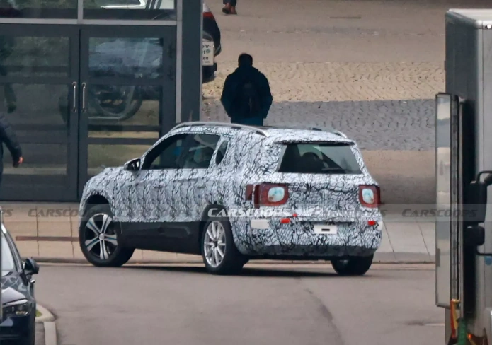 Прототипы модели в плотном камуфляже заметили на дорожных тестах. Кроссовер сохранил квадратные пропорции кузова и габариты, характерные для GLB. При этом он выполнен в новом языке дизайна марки. Сквозь маскировку можно рассмотреть более крупную решетку радиатора и фары клиновидной формы, а также переработанный бампер. Литые колесные диски получили довольно оригинальный дизайн.