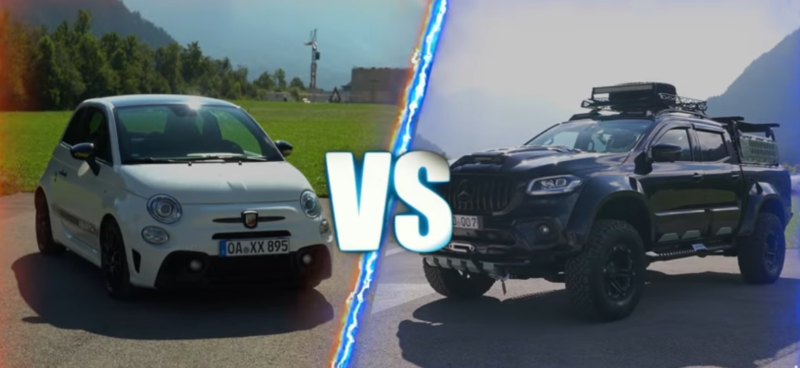 Mercedes X-Class сравнили в дрэге с миниатюрным хэтчбеком Abarth (видео)