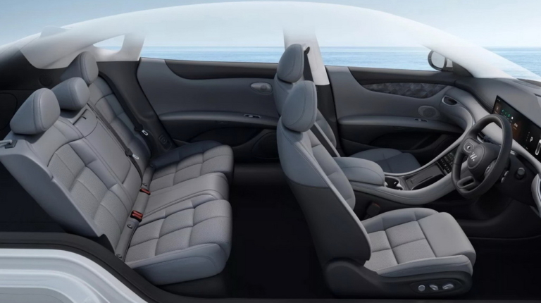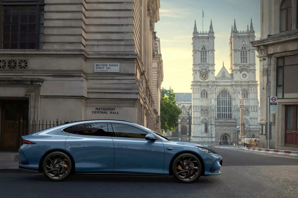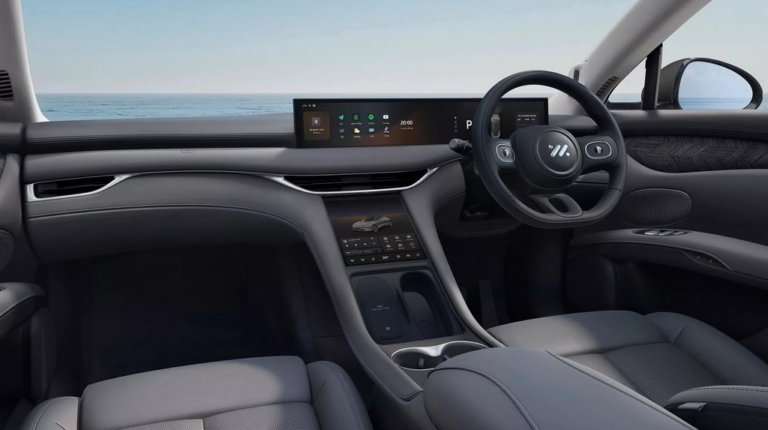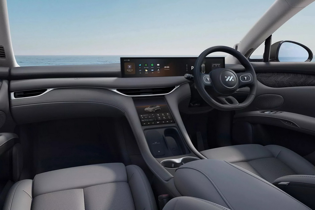 Представительский лифтбек MG IM5 – электромобиль с обтекаемым кузовом, стилистически напоминающий Porsche Taycan. Он выделяется плавными изгибами, утопленными дверными ручками и низким коэффициентом аэродинамического сопротивления 0,226. Также новинка получила панорамную стеклянную крышу, большой спойлер, светодиодные задние фонари и 19-дюймовые легкосплавные диски с аэродинамически оптимизированным дизайном.