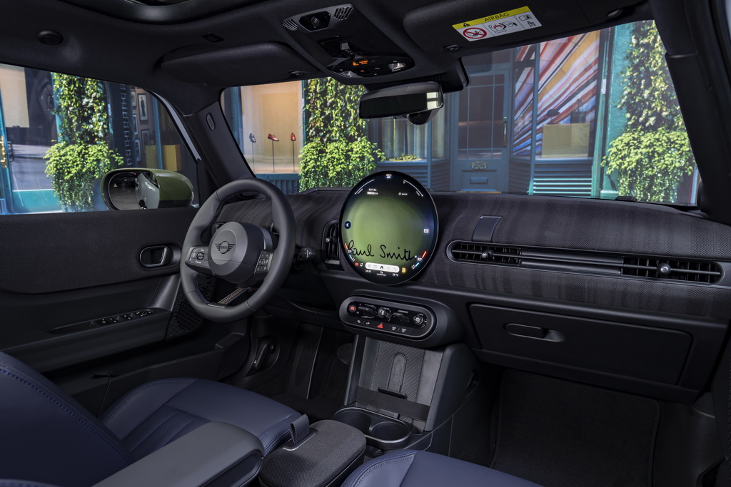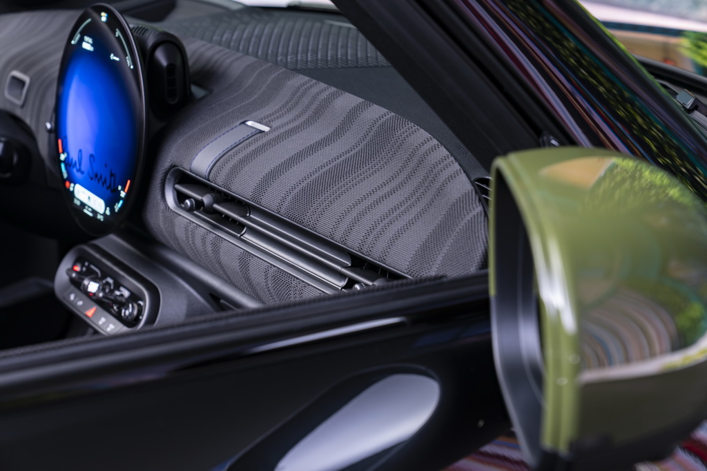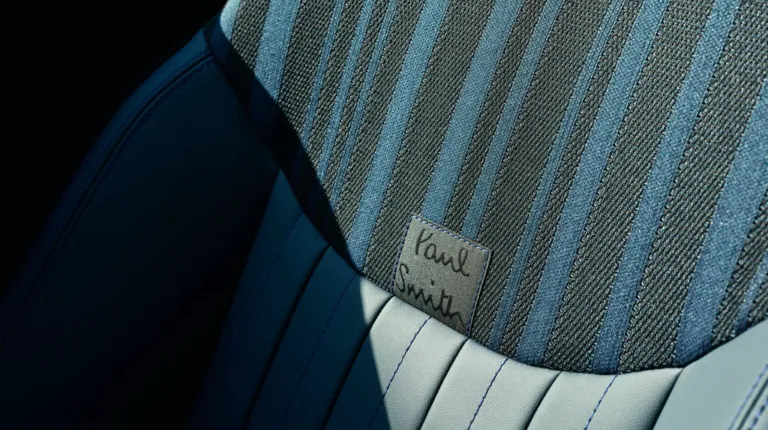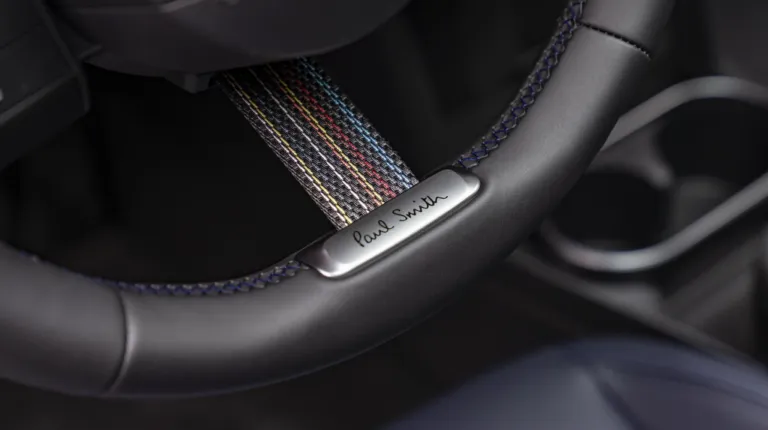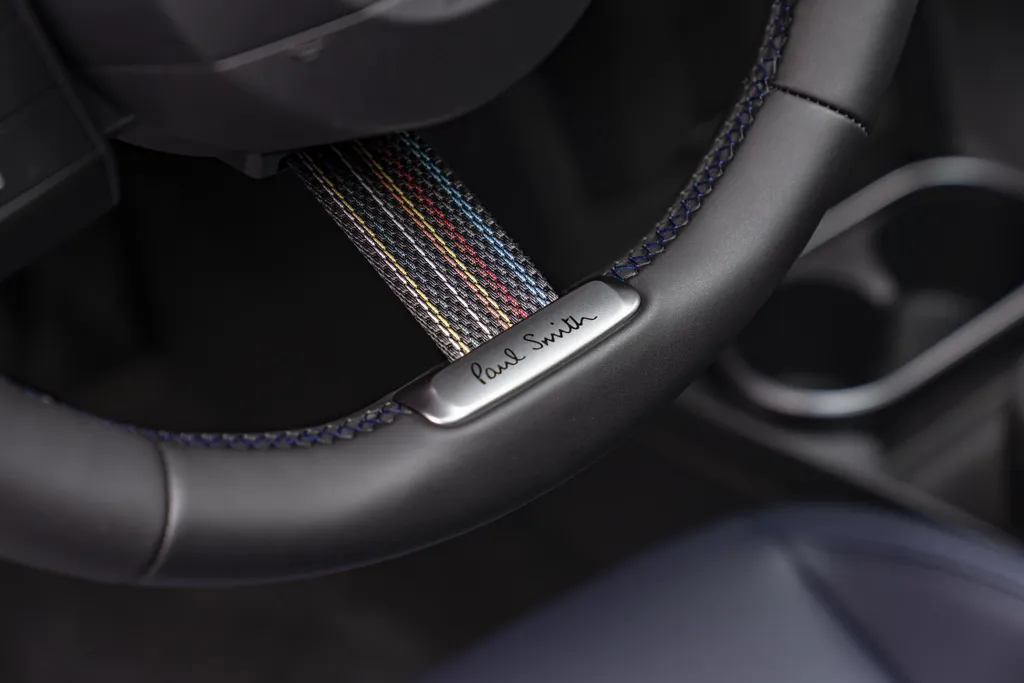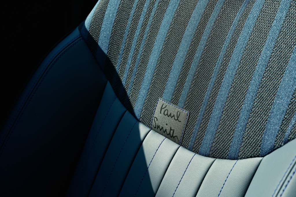 Внутри появились спортивные сиденья цвета Nightshade Blue, сочетающие искусственную кожу Vescin с двухцветной текстильной верхней частью. Также для отделки приборной панели и дверных панелей используется тканевая отделка с оригинальным рисунком, а рулевом колесо украшено декоративным орнаментом. Завершают список особенностей эмблемы Paul Smith и стилизованного кролика на ковриках.