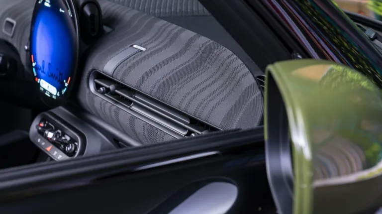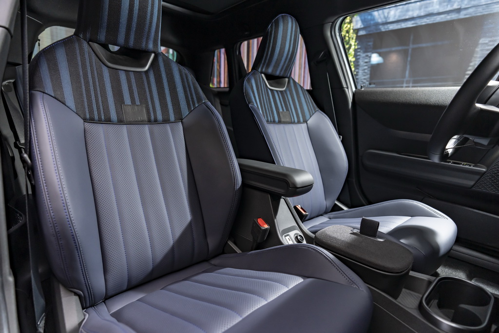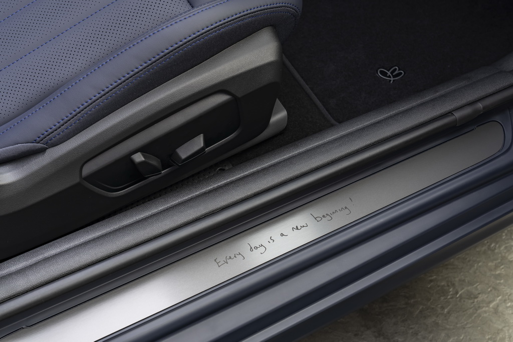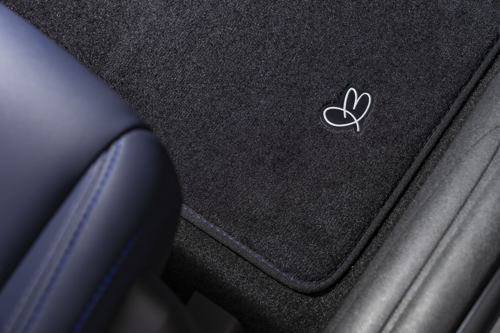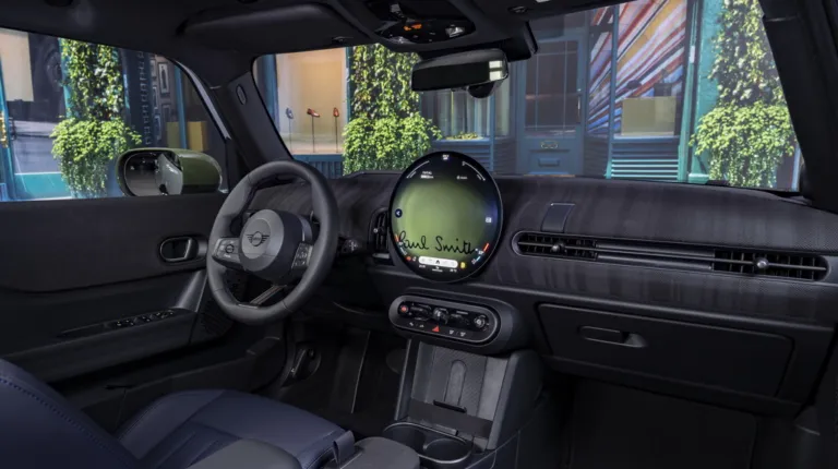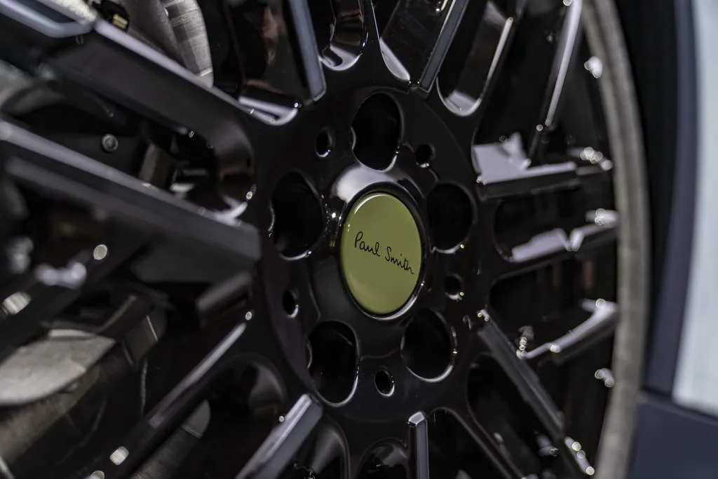 Внутри появились спортивные сиденья цвета Nightshade Blue, сочетающие искусственную кожу Vescin с двухцветной текстильной верхней частью. Также для отделки приборной панели и дверных панелей используется тканевая отделка с оригинальным рисунком, а рулевом колесо украшено декоративным орнаментом. Завершают список особенностей эмблемы Paul Smith и стилизованного кролика на ковриках.