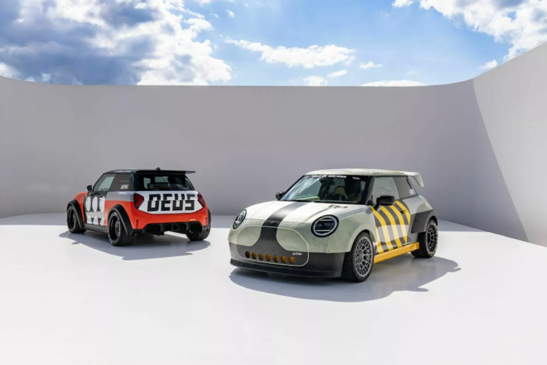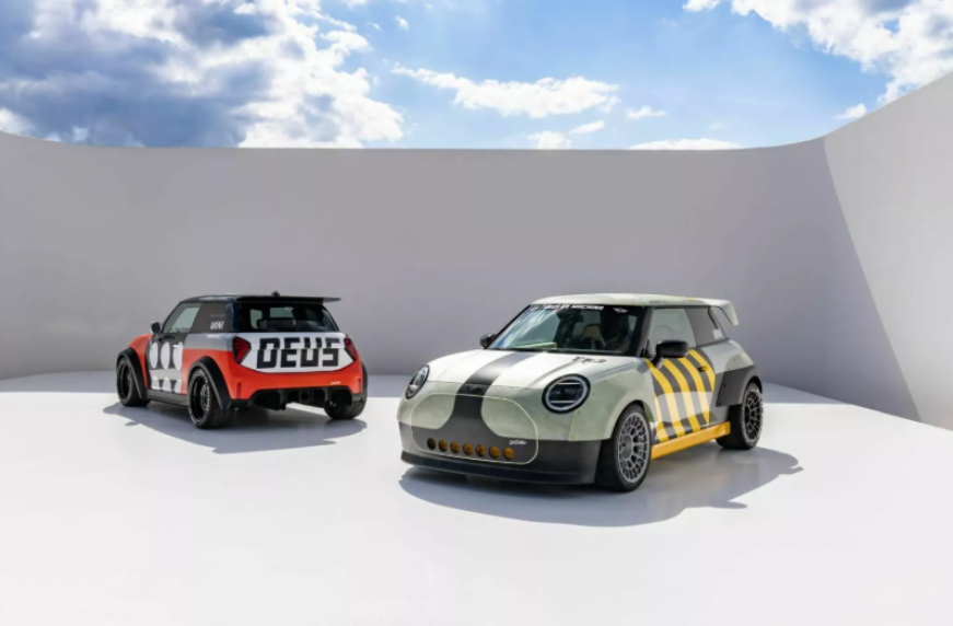 Модели находятся в статусе концепта и отличаются уникальным дизайном и функциональностью. Основой для них стали JCW и JCW Electric. Авто с двигателем ICE получило название The Machina, а электрический вариант – The Skeg. Так, Machina черпает вдохновение в автоспорте, а Skeg – вдохновлен серфингом. Среди общих деталей – крупная графика на крыше, фирменная символика Deus и асимметричные обвесы.