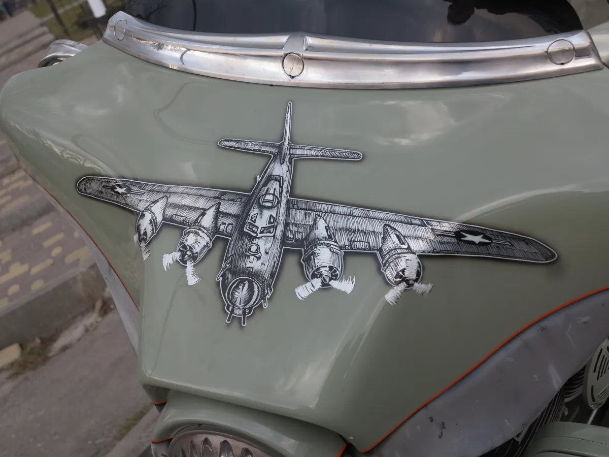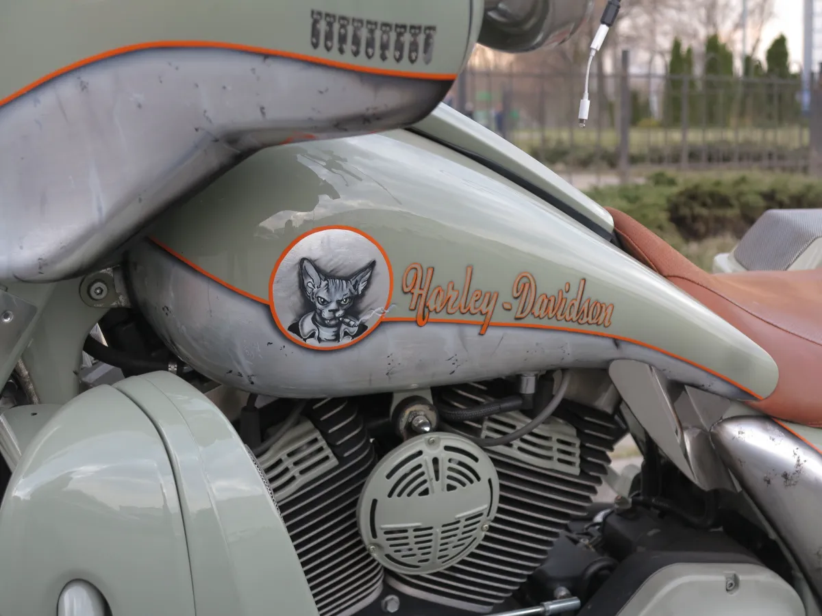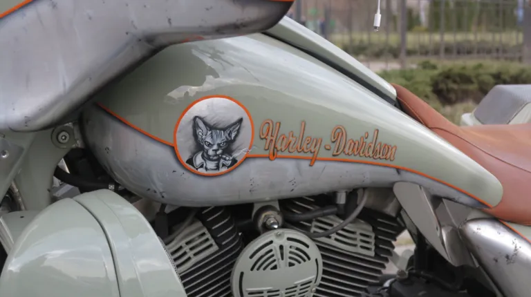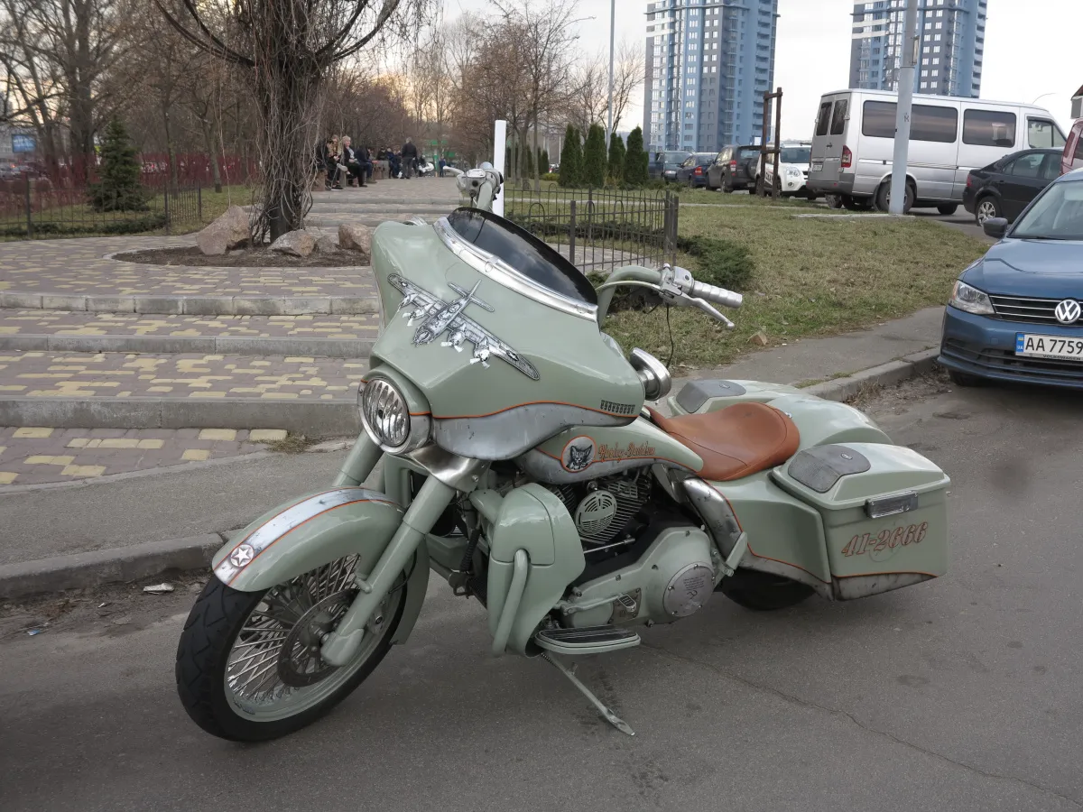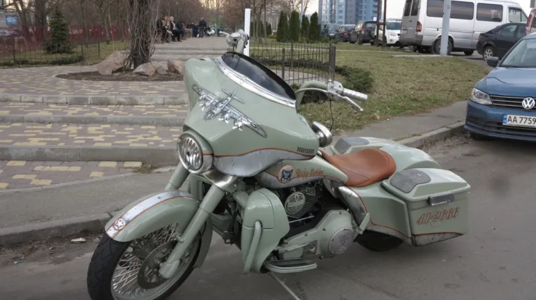 Примечательно, что хозяин юбилейного пикапа приехал на выставку Bike Expo 2019, которая проходит в Киеве с 8 по 10 марта, не один. А с невероятным мотоциклом Harley-Davidson, который подвергся милитаристскому тюнингу.