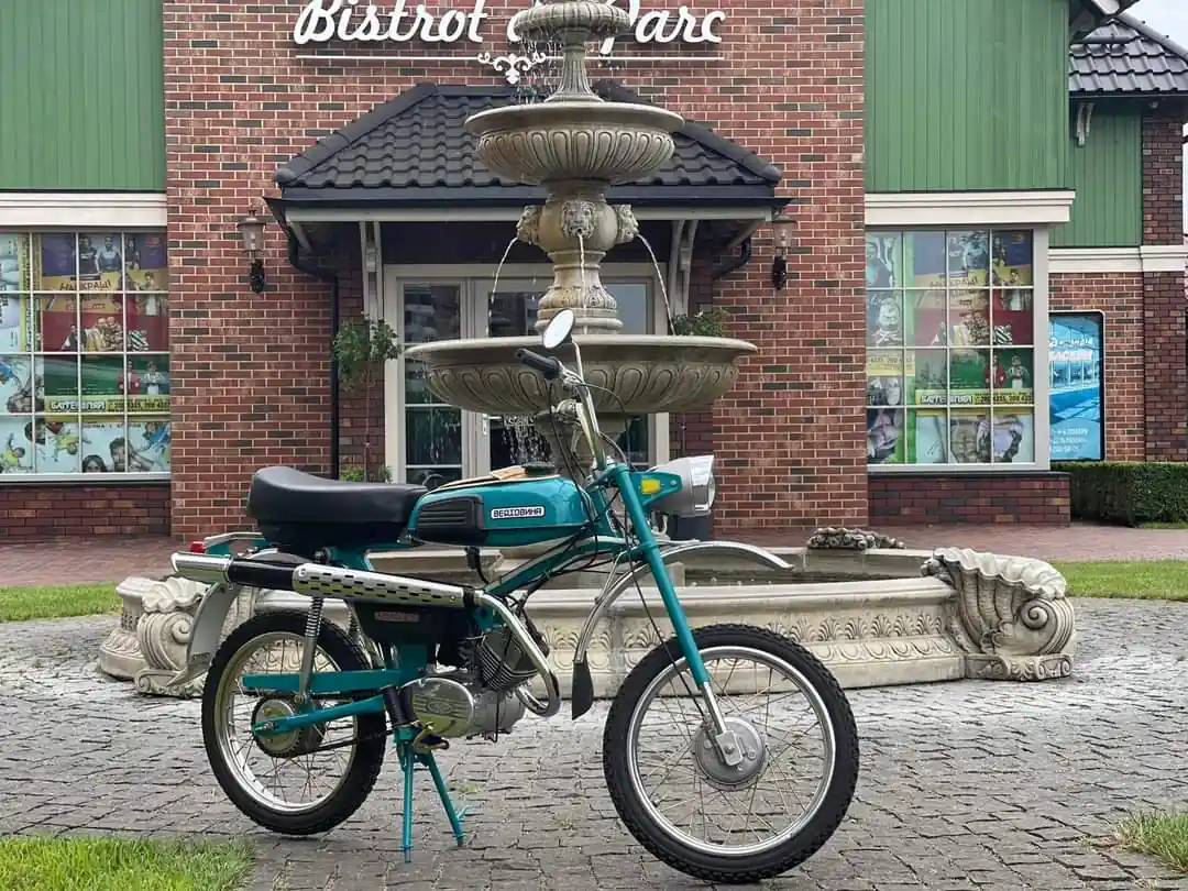 Представленный на фото мопед относится к позднему выпуску, о чем говорит редкий бирюзовый окрас, появившийся в октябре 1981 года. Заметим, что «Верховина-6 Спорт» выпускалась в различных цветах – красном, оранжевом, зеленом.