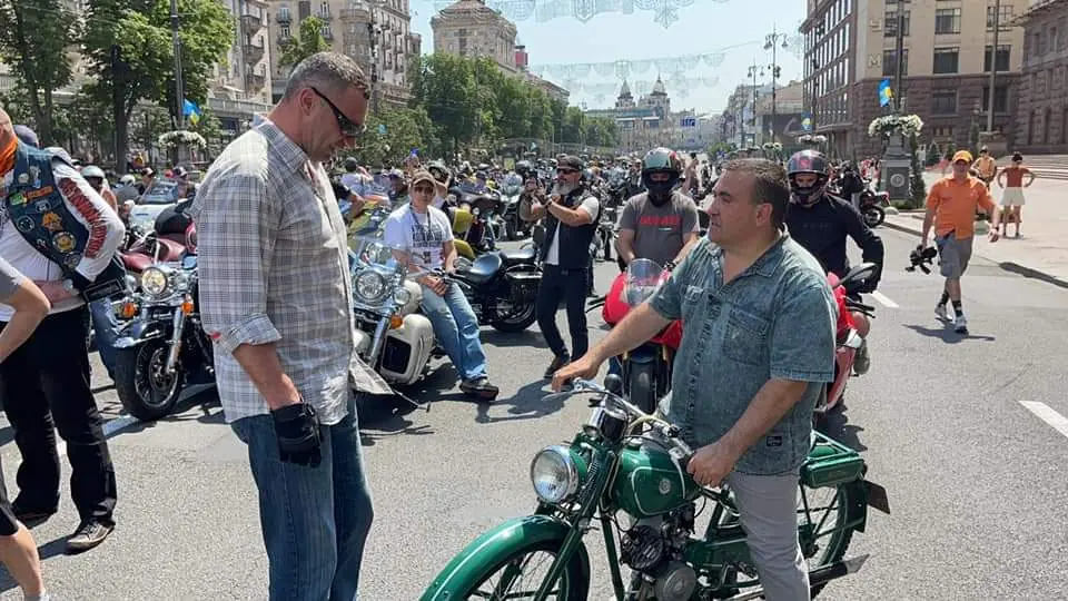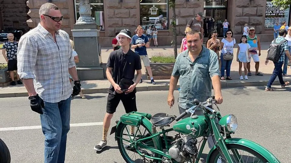 Во время старта колонны мотобайков по Крещатику мэр Киева Виталий Кличко сел за руль первого детища Киевского мотозавода - молели КМЗ К1Б "Киевлянин".