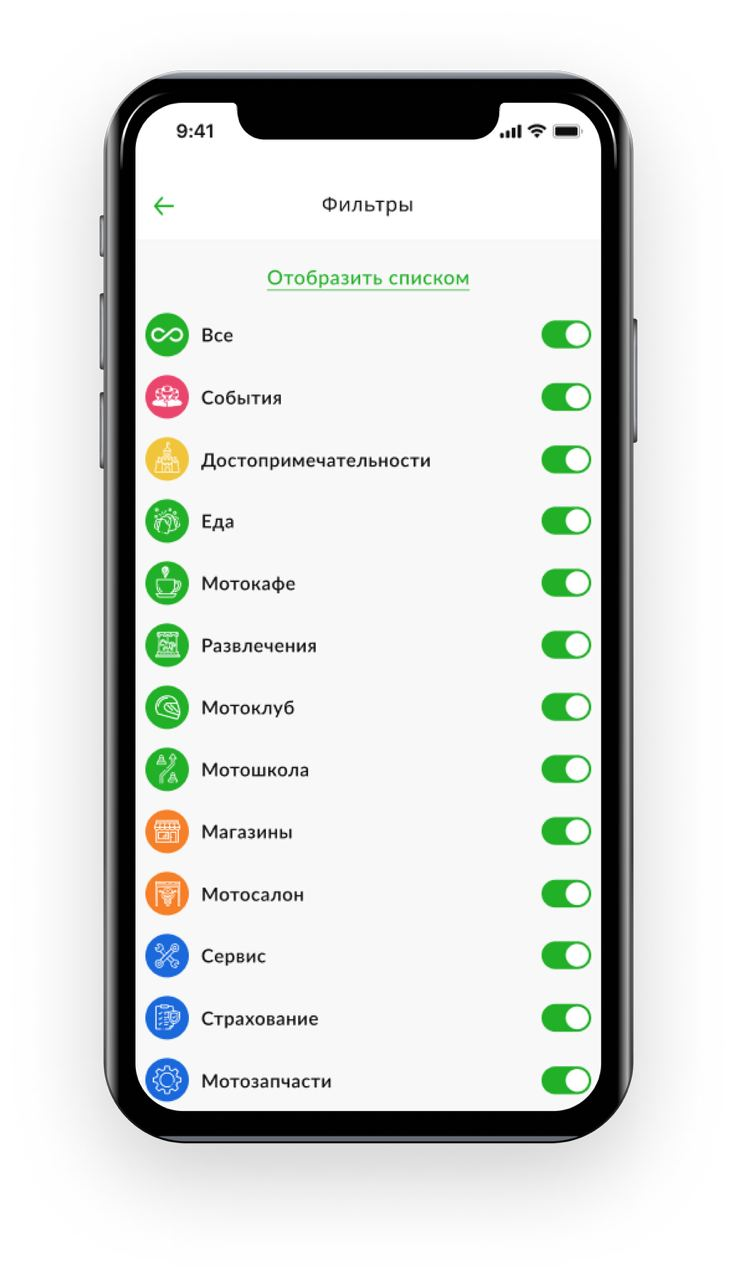 После разработки этой экстренной функции мы подумали, что еще может быть полезно для мотоциклистов, и добавили на карту мотоместа (СТО, магазины, мотошколы и пр) с отзывами других пользователей и возможность для каждого самостоятельно добавить свой “мотоспот” на карту.