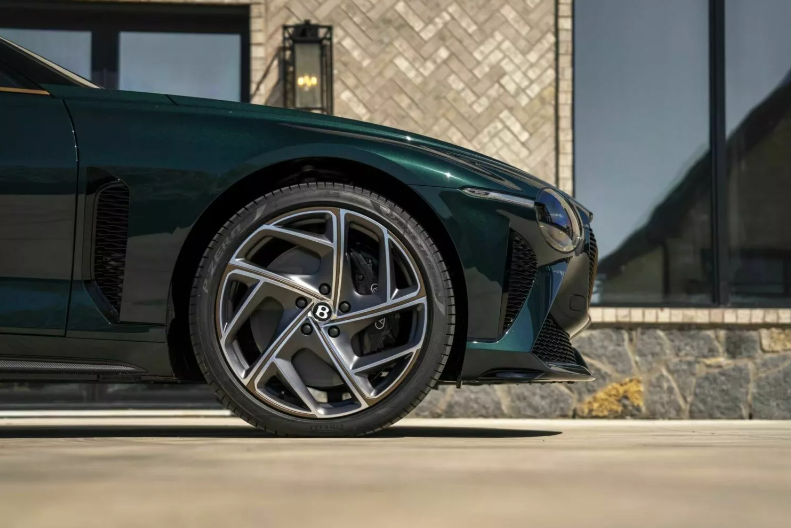 Автомобиль выполнен в темно-зеленом оттенке Mulliner Extended Range Veridian и дополнен пакетом Carbon Fiber. Последний включает в себя элементы из углеродного волокна, а именно вентиляционные отверстия на капоте, боковые молдинги, крышки зеркал заднего вида, заглушки на подголовниках. Контраст основному цвету кузова делают вставки матового бронзового оттенка.