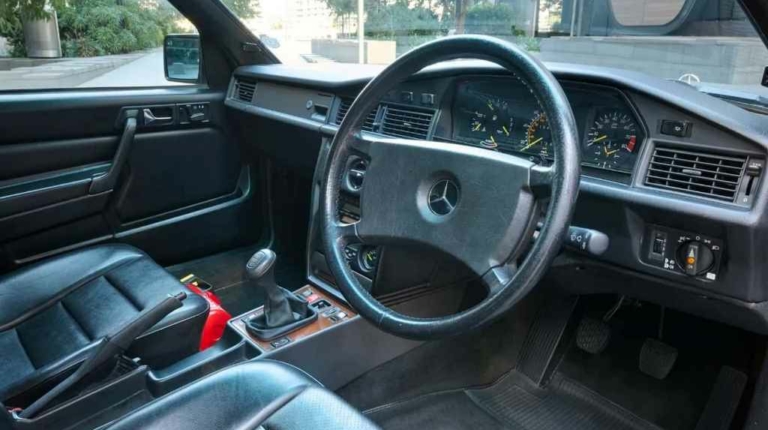 Предлагаемый на продажу Mercedes-Benz 190 E был приобретен легендой Формулы-1 в 1985 году прямо с завода после победы на Нюрбургринге в “Гонке чемпионов”. Автомобиль окрашен в оттенок Smoke Silver Metallic, а салон отделан черной кожей. Несмотря на солидный возраст и пробег в 155 343 миль (почти 250 тысяч км) он находится в отличном состоянии.