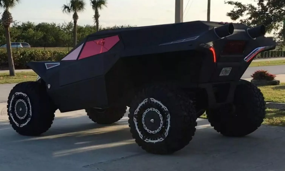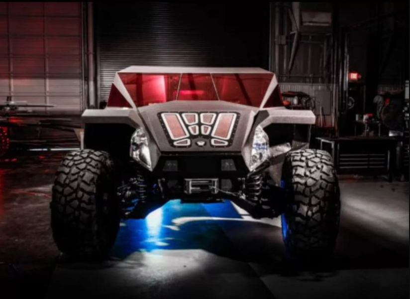 В основе уникального автомобиля лежит Hummer H1 2003 года выпуска. Тюнеры полностью переработали у него кузов, сделав его максимально агрессивным, напоминающим панцирь хищной птицы. В пользу образа играют и двери, открывающиеся против хода движения, особые фары и задние фонари, еще колесные диски, изготовленные на заказ и обутые в 44-дюймовые шины Super Swamper.