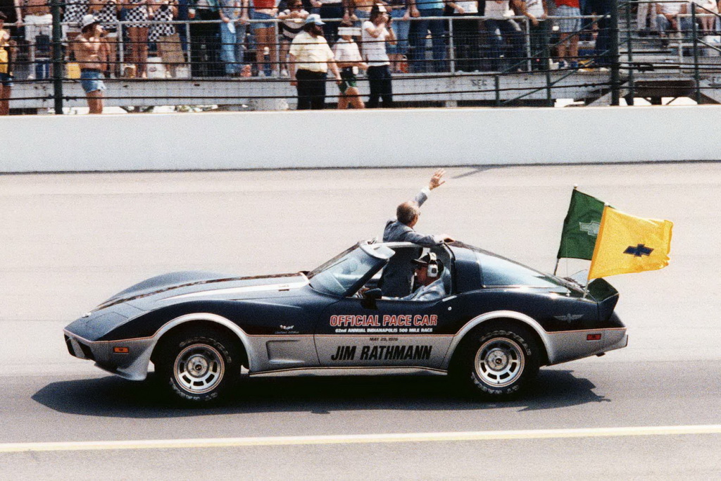 В 1978 году компания Chevrolet отмечала 25-летие своего культового спорткара Corvette. Знаменательная дата стала прекрасным поводом для дебюта модели в знаменитой гонке “500 миль Индианаполиса” в качестве пейс-кара. За рулем машины был победитель Indy500 1960 года Джим Ратман.